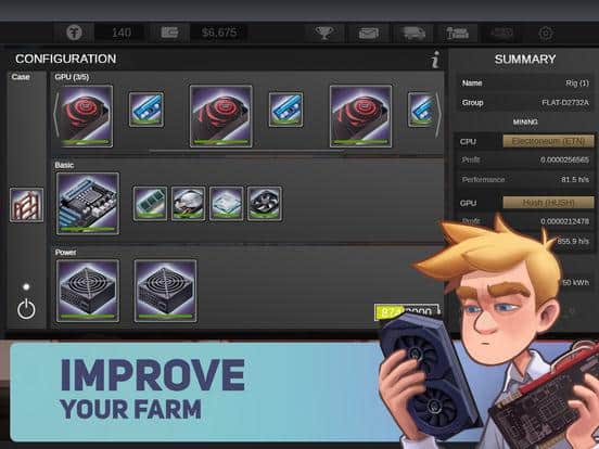 Blockchain: Miners' Fever – захватывающий симулятор для IOS, основанный на реальном процессе добычи криптовалют. В этой игре вы сможете проверить себя в роли майнера, которому необходимо построить свою небольшую ферму и начать добывать криптовалюту. Собирайте компьютеры, арендуйте небольшое помещение и постройте свою первую ферму. Улучшайте и прокачивайте процесс добычи валюты и комбинируйте для этого разные комплектующие. Арендуйте новые офисы и расширяйте свою ферму при этом, стараясь вытеснить своих конкурентов. Займите территорию всего бизнес-центра и продавайте и покупайте валюту по выгодному курсу. Станьте миллиардером или разоритесь в пух и прах.