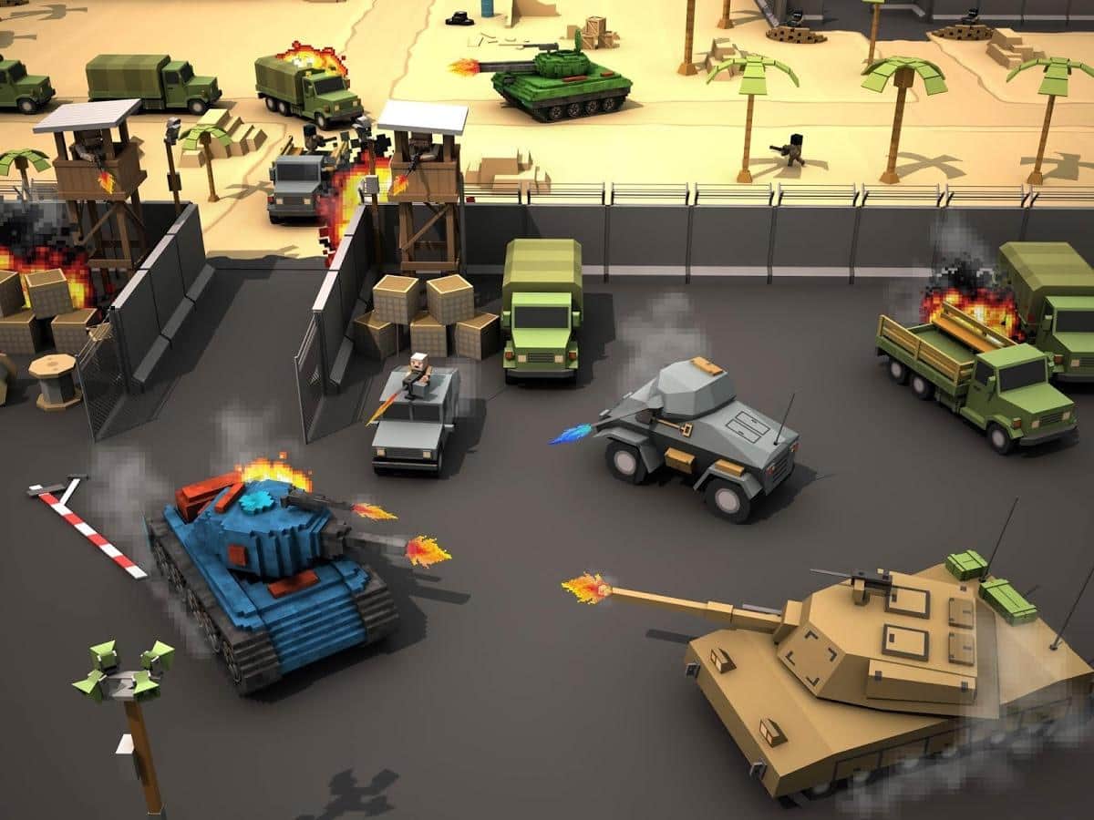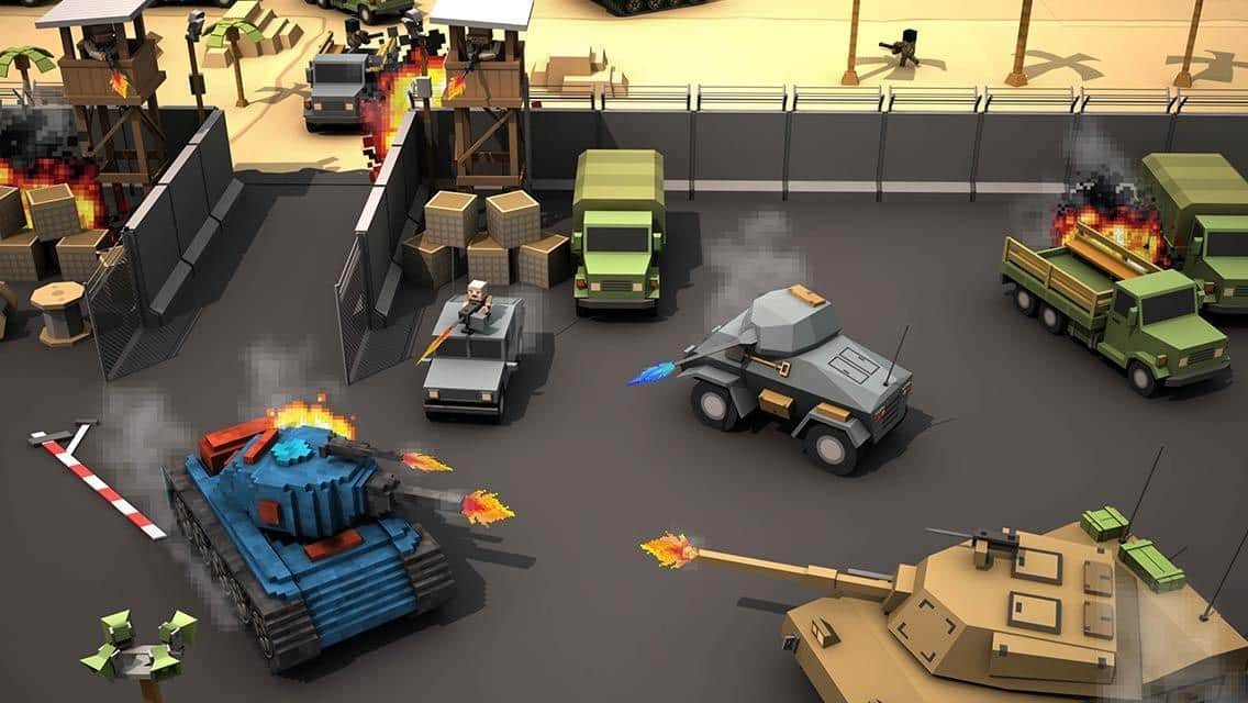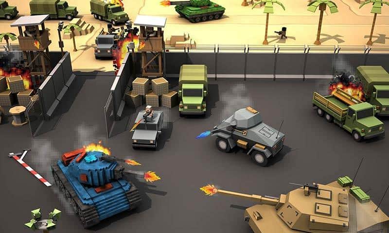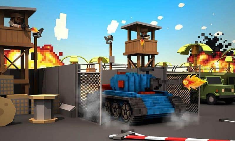 Blocky Battlefield Extreme – примите свое участие в танковых баталиях в этой игре на андроид. В игре вы возьмете под свой контроль уникальный танк и проведете его по многочисленным локациям игры, уничтожая танки противника. Защитите свой город от вторжения вражеских танков, используя для этих целей мощное оружие и пулеметы. Подрывайте бронированные машины противника, взрывайте вертолеты и танки и не дайте врагам прорвать вашу оборону. Используйте различные укрытия и здания для защиты от прицельного огня противника и призывайте на помощь союзников. Приобретайте новые танки и улучшайте их в своем ангаре.