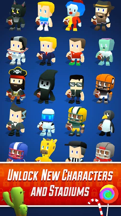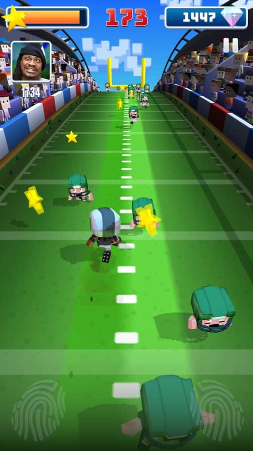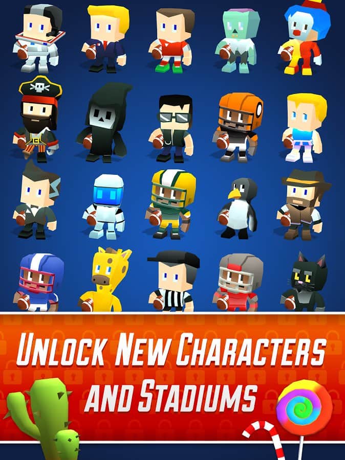 Blocky BEASTMODE Football – возьмите под свой контроль футболиста и проведете его по различным стадионам. В этой игре вы будете управлять бегом футболиста, который бежит вперед, обходя все преграды и соперников у себя на пути. С помощью одного прикосновения пальца к экрану прокладывайте герою правильный маршрут. По пути собирайте многочисленные монетки, которые позволят вам открыть новых героев, которые обладают уникальной внешностью. Применяйте в деле супер способности и умения героя сбивайте с ног своих врагов. Пройдите как можно большей путь в этой игре и установите свой рекорд, соревнуясь с друзьями за лучшие результаты.