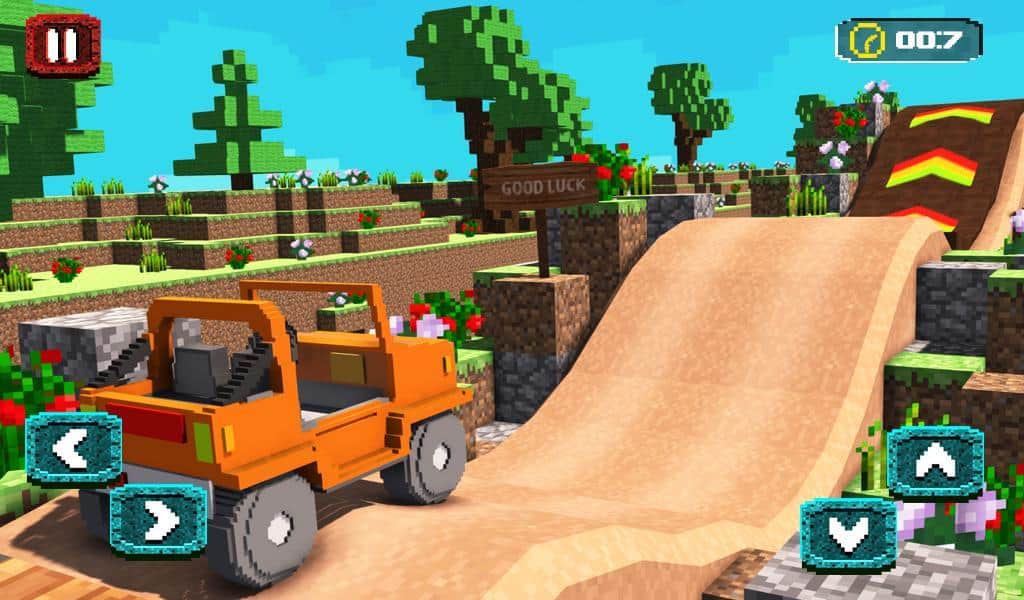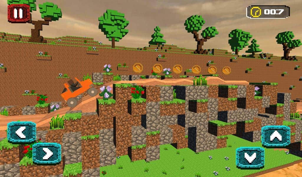 Blocky Car Stunts : Impossible Tracks – проведите свой автомобиль по многочисленным кубическим трассам этой игры на андроид. В этой игре вы будете управлять небольшим автомобилем, который ездит по различным трассам и пытается добраться до финиша. Давите на педаль газа и разгоняйте свой автомобиль до предельной скорости, взлетая вверх с различных трамплинов. Проделывайте трюки и сальто и получайте отличные награды. По пути своего следования не забывайте собирать монетки, на которые в дальнейшем вы сможете приобрести новые машины и улучшения для них. Открывайте новые трассы и установите свой рекорд в этой игре.