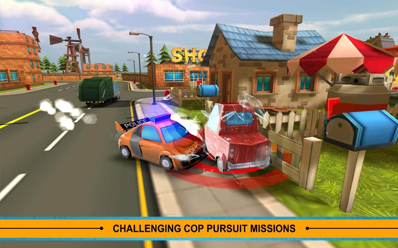 Blocky Cop Pursuit Terrorist - гоночная экшен аркада в которой вам отводится роль водителя патрульного автомобиля в небольшом городке. Хоть вашему городу далеко до крупного мегаполиса, но и у вас есть своя достопримечательность это федеральная тюрьма строгого режима. Однажды при перевозке опасных преступников произошла авария и бандитам удалось выбраться из фургона полиции, не долго думая злодеи захватили роскошный гоночный автомобиль и отправились на выезд из города. В то же время вы находились на рабочем месте и получив вызов принялись преследовать беглецов. И так, ваша задача остановить убегающих, при этом можно наплевать на правила дорожного движения и делать все что захочется, главное достичь цели. Помимо увлекательного и динамичного геймплея в Blocky Cop Pursuit Terrorist отличная графика, способная порадовать даже искушенных геймеров.