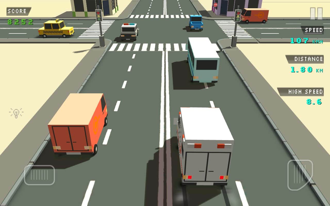 Blocky Traffic Racer – аркадные гонки на андроид, с мультяшной графикой. В этой игре вы отправитесь в бесконечное путешествие по различным городским дорогам, обгоняя другие машины, мчась навстречу приключениям. Собирайте монетки и приобретайте на них новые более маневренные автомобили и продолжайте путешествие. Эта игра порадует вас 8 различными треками, которые будут сопровождать вас на протяжении всей игры, разнообразными машинами и мультяшной графикой с различными мирами. Играйте в эту игру и сравнивайте свои достижения с другими игроками в глобальной таблице лидеров.
