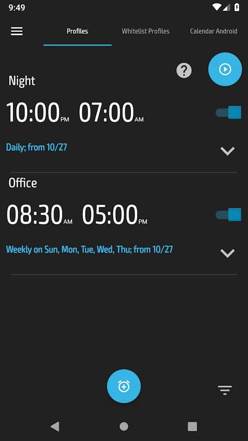 Разные аккаунты и настройки по часам и дням недели;