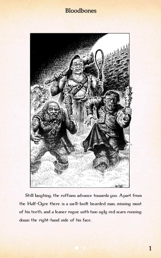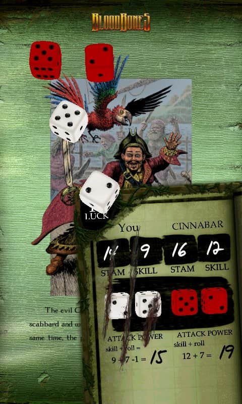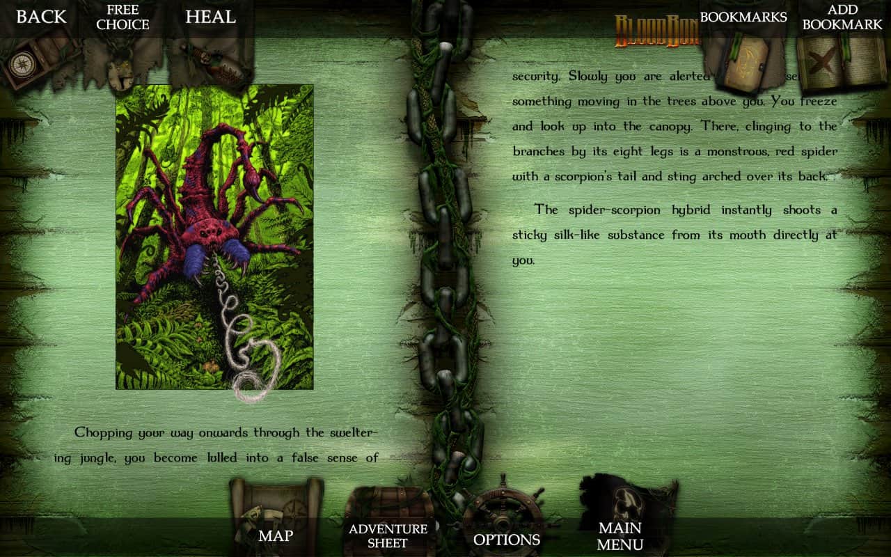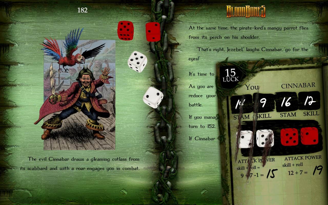 Bloodbones - Страшный пират лорд Киновари, Гроза Двенадцати морей, терроризировал всех моряков Старого Света, пока храбрый искатель приключений положил конец его злодействам. Но вот он восстал из мертвых, чтобы отомстить. Но теперь он владеет тёмными силами колдовства. Станьте следующим героем, освободившим моря от этого злодея. Вас ждут гонки на время, путешествия по новым местам, выбор между полноцветным изображением или черно-белым. Используйте уникальное оружие, такие как метательные ножи и газ-глобусы в дополнительных стратегиях. Это великолепное фантазийное приключение от Стива Джексона и Яна Ливингстон включает в себя также специально написанный саундтрек и звуковые эффекты.