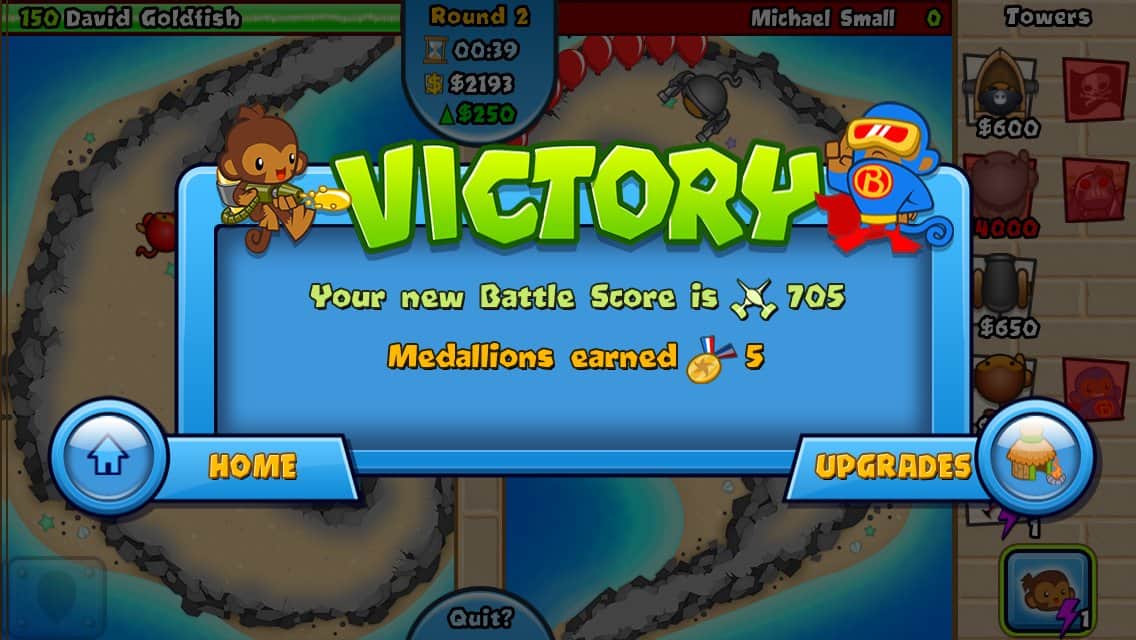 Bloons TD Battles - Замечательное продолжение игры на андроид серии Bloons TD. Теперь франшиза расширила свои возможности. У вас появилась возможность играть в режиме мультиплеер, как на одном устройстве, так и на двух. Вас ждет восемнадцать пользовательских карт для сражений и около двадцати башен с разными улучшениями и обновлениями. Игра понравится всем поклонникам предыдущей части.