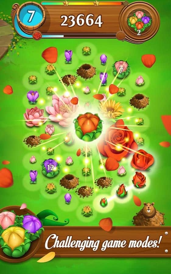 Blossom Blast Saga – увлекательная игра на андроид, из жанра три в ряд. В этой игре вы окажитесь в прекрасном саду, где растут цветы невероятной красоты, вашей задачей будет находить одинаковые по цвету и соединять их одной линией. Собирайте цветы по диагонали и наблюдайте, как они будут распускаться, и взрывать цветы находящиеся неподалеку. Также опасайтесь сорняков, которые могут погубить красивые бутоны цветов. Старайтесь соединить воедино как можно больше цветов и убрать их с поля, наблюдая за красивыми спецэффектами. Приложите все свое мастерство и выполняйте поставленные задачи за минимально короткое время. Соревнуйтесь с друзьями и устанавливайте свои рекорды.