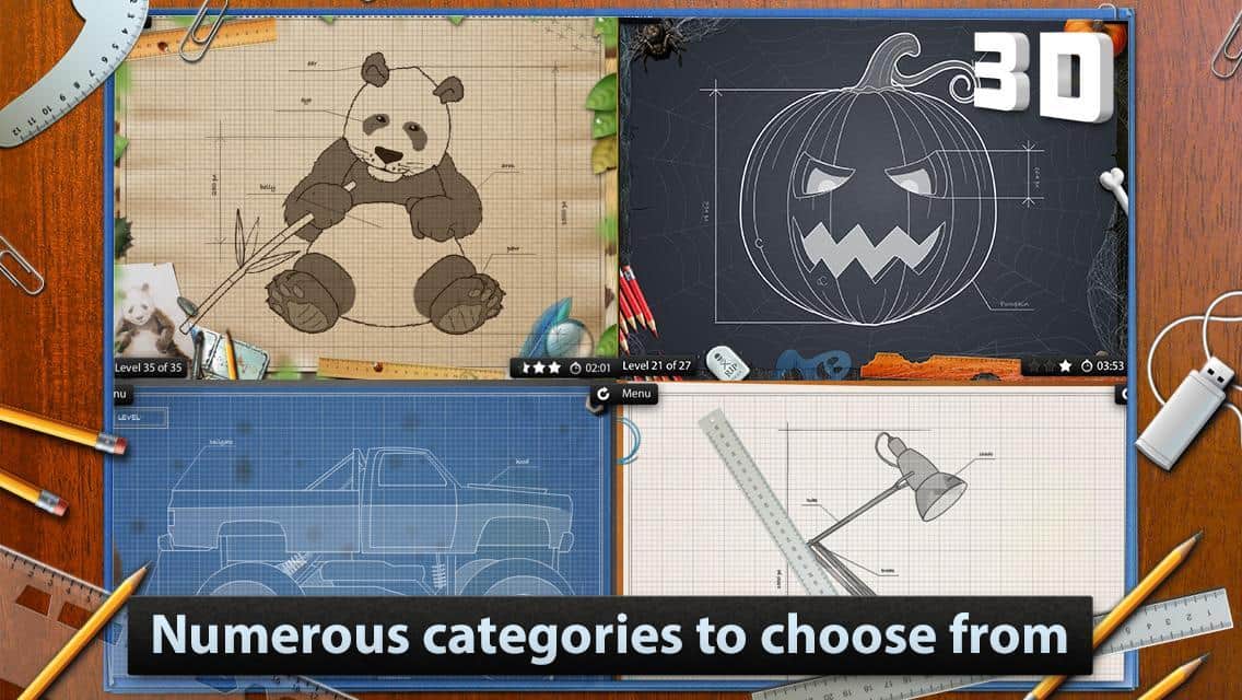 Blueprint3D HD - Волшебная трехмерная игра-головоломка на андроид. Каждый уровень начинается с загадочного скопления в картинке, пока вы не разгадаете его. Выполняйте перетягивание пальцем по своему дисплею для поворота и разворота фигуры. Найдите решение головоломки, собирая и поворачивая фигуру со всех сторон, собирая части картинки в единое целое, пока вы не найдете решение.