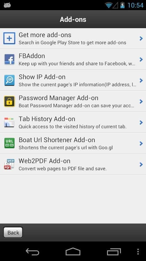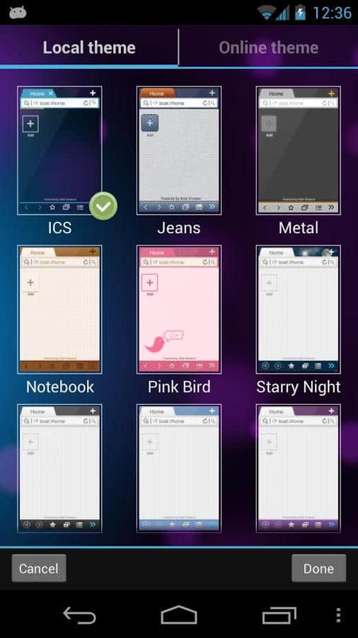 Boat Browser - функциональный и быстрый браузер для андроид с собственным менеджером загрузок, несколькими темами оформления и удобным менеджером закладок с поддержкой папок и возможностью их импорта и экспорта из стандартного браузера. Есть возможность сохранять ярлык интернет-страницы непосредственно на рабочем столе. А качельку регулировки громкости можно использовать для переключения закладок, прокрутки вверх/вниз или масштабирования страницы. Возможно перемещение программы на карту памяти.