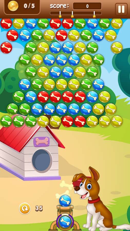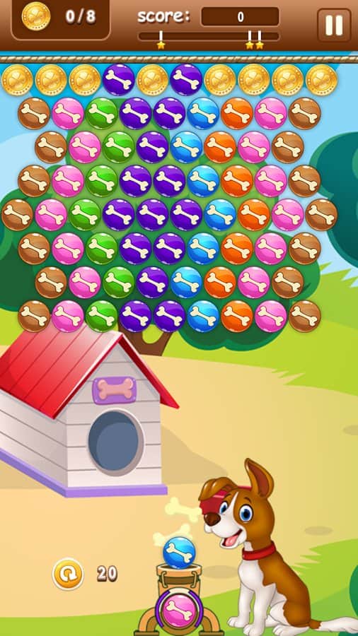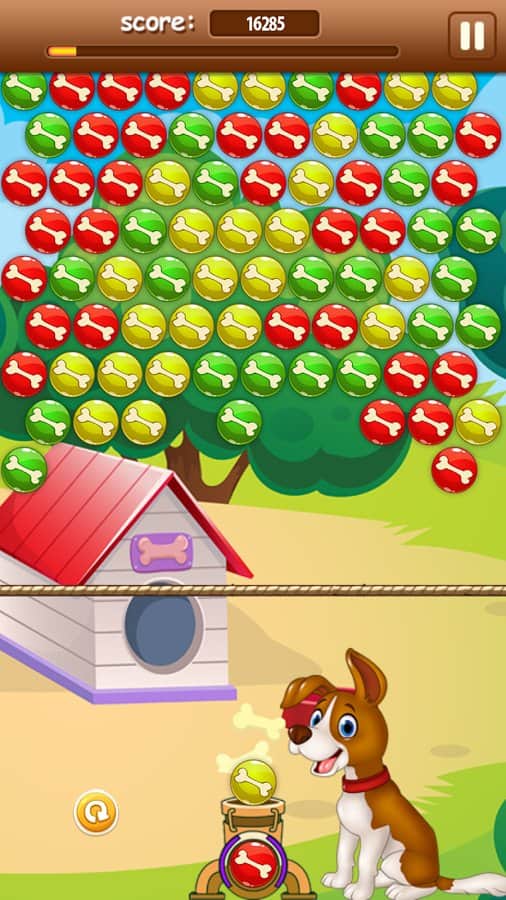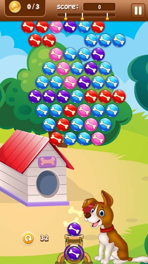 Помоги щенку достать косточки из шаров, сочетая одинаковые цвета и заставляя их лопаться. Неизвестно, кто спрятал от щенка косточки, но ему одному не под силу разобраться с одинаковыми цветами шаров, поэтому игроку в Bobik Bubble предстоит подумать, как лучше соединить между собой шары, чтобы они освободили косточки. Оригинальный сюжет не даст заскучать, а прохождение более 100 уровней точно займет много свободного времени в пробках, очередях и во время утомительного ожидания. Загружай игру и покорми щенка!