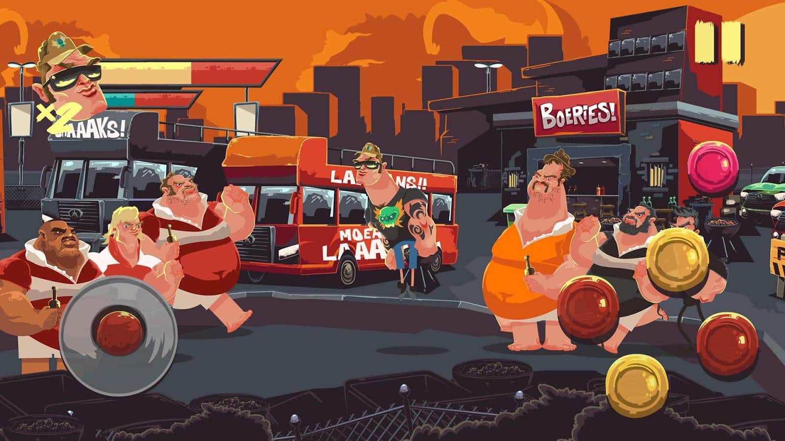 Boet Fighter – 2D платформер на андроид, с боковой прокруткой. В этой игре вы возьмете под свой контроль отважного и сильного героя который имеет жим 150 кг. Наш герой должен проложить себе путь сквозь Йоханнесбург и выполнить все поставленные квесты чтобы остаться легендой в глазах общественности. Расчищайте себе путь сквозь толпы врагов, которые не против побороться с вами и укладывайте их всех на лопатки. Прокачивайте и улучшайте своего героя по ходу игры и применяйте к нему некоторые химические вещества, которые повысят его производительность. Также эта игра является хорошим способом выучить много южноафриканского сленга.