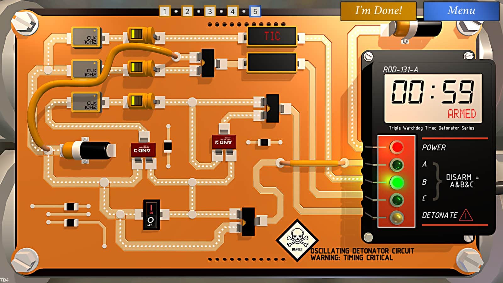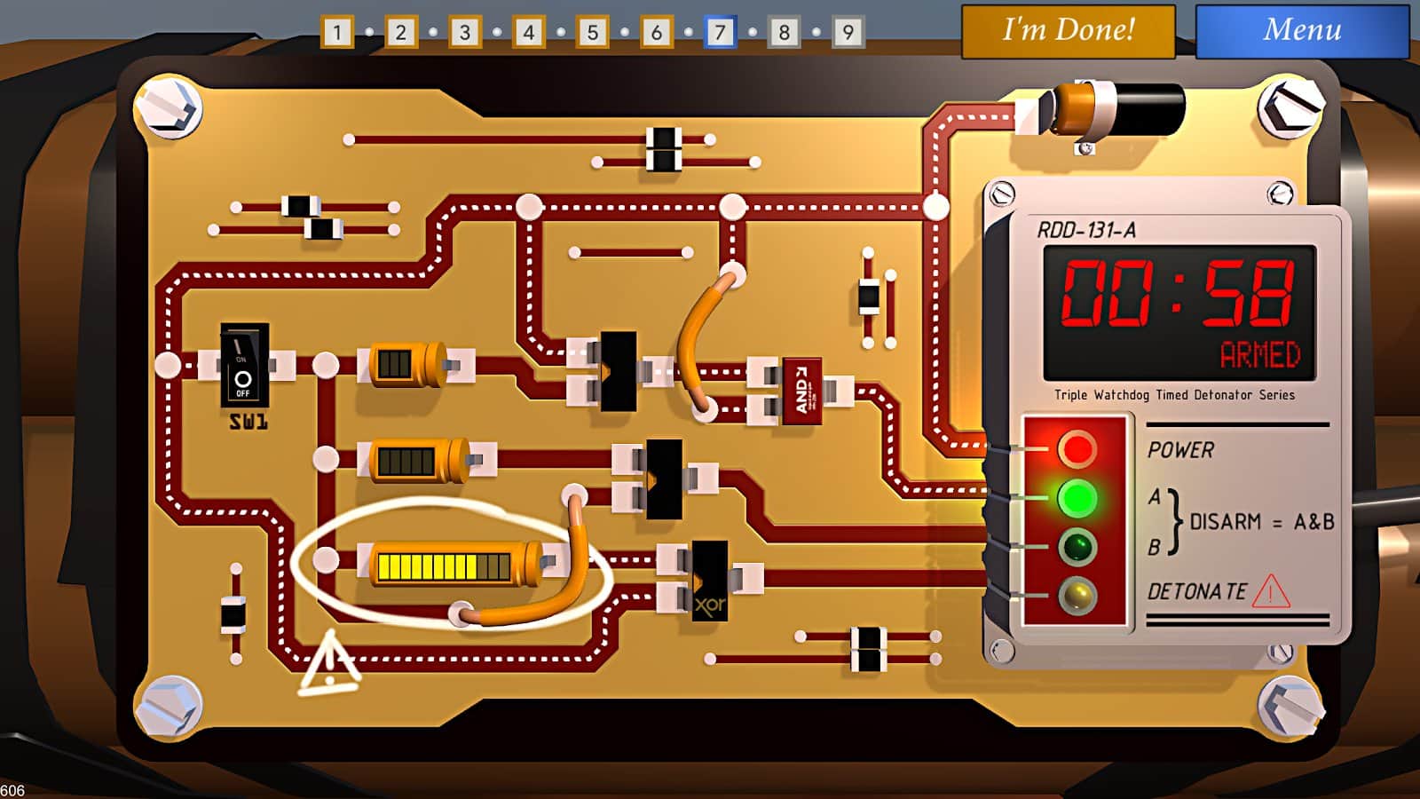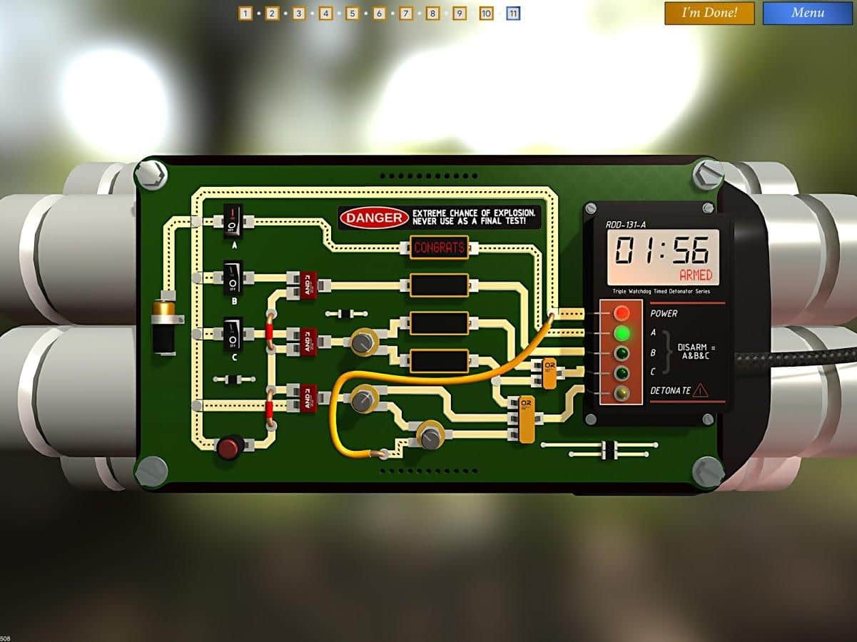 Bomb Squad Academy – игра-головоломка на андроид, где вы будете обезвреживать бомбы за определенный промежуток времени. В этой игре вы будете выступать в роли сапера который должен положиться на свои знания и логику для того чтобы спасти мир. Проанализируйте работу платы бомбы и правильно отключите детонатор. Будьте предельно осторожны и внимательны, ведь каждое ваше неверное движение может привести к тому, что бомба взорвется. По мере прохождения игры сложность схем будет увеличиваться, что проверит вашу способность быстро реагировать и решать логические головоломки.