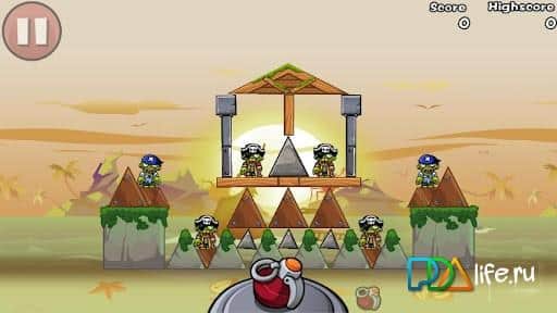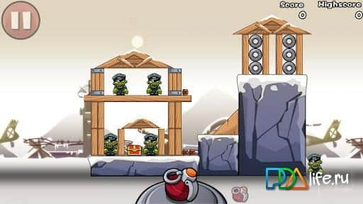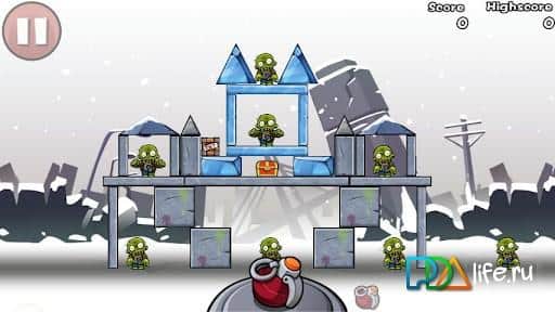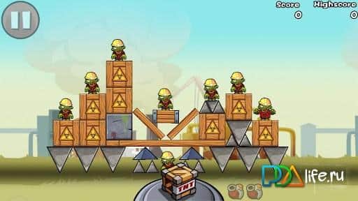 Bomb The Zombies - эта аркада чем-то напоминает известную игру Angry Birds, но здесь уже совсем не птички, а знакомые зеленые человечки без мозгов - зомбики! Цель проста - используя ограниченное количество взрывчатых зарядов, уничтожить всех зомби, попав непосредственно в них или же с помощью разрушения строений, в которых они прячутся!