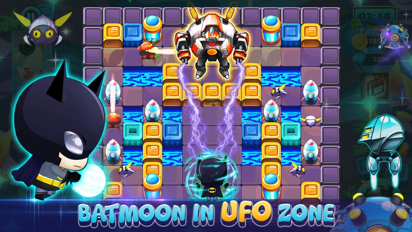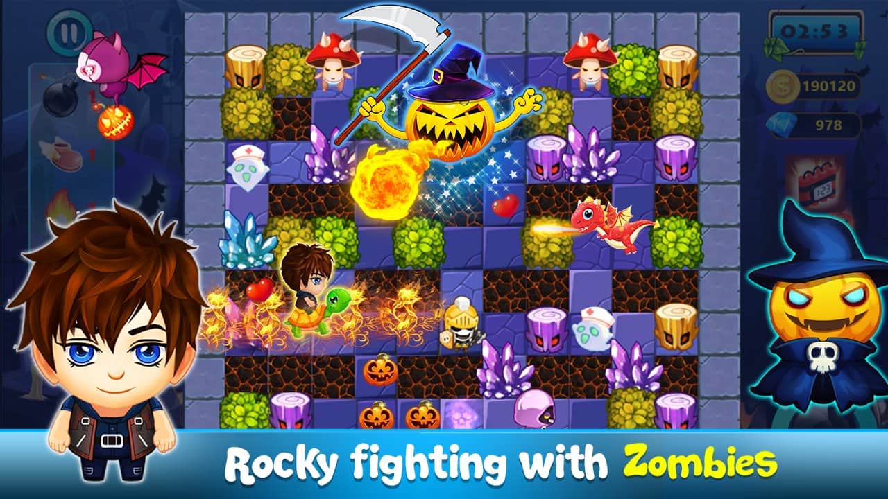 Bomber Legend: Super Classic Boom Battle – перемещайте героя по опасному лабиринту и обходите все преграды на пути. Ваш герой в этой игре будет использовать бомбы, с помощью которых будет прокладывать себе дорогу. Расставляйте бомбы в нужных местах и наслаждайтесь зрелищными взрывами и эффектами. Старайтесь одним взрывом уничтожить как можно больше врагов и преград на пути. Опасайтесь того что ваш герой сам может взорваться на своей бомбе. По пути собирайте бонусы и усиления и применяйте их против врагов. Путешествуйте по пяти различным мирам и открывайте новых забавных героев. Приручайте питомцев и вместе с ними быстрее проходите уровни.