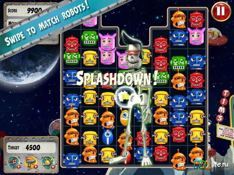 Bonehead Puzzle - игра головоломка из жанр три в ряд в которой вы попадете в мир роботов. Складывайте роботом одного цвета в ряды или по диагонали и они исчезнут, а также проделывайте комбо удары по удалению 3 или более фигурок и зарабатывайте максимальное количество очком в уровне. Приглашайте своих друзей в игру и сравнивайте свои результаты с их и проверьте насколько хорошо вы играете.