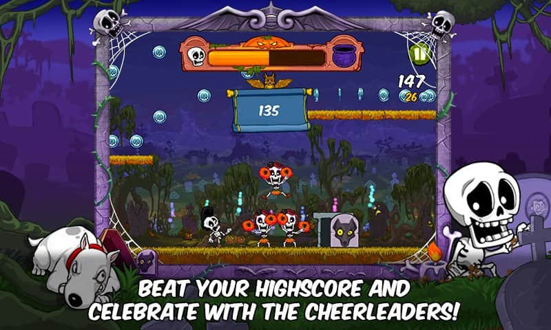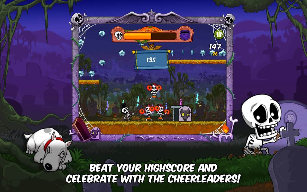 Boney The Runner - раннер с высоким ритмом игры, в котором вам предстоит бегать скелетом по различным уровням, собирать монетки и различные бонусы. Опасайтесь различных ловушек и препятствий, которых с лихвой хватает, для того чтобы вас остановить. Игра отлично подходит для того, чтобы можно было соперничать со своими друзьями. Ставьте новые рекорды и смотрите, как ваши друзья пытаются его побить. Приятной игры!