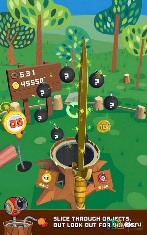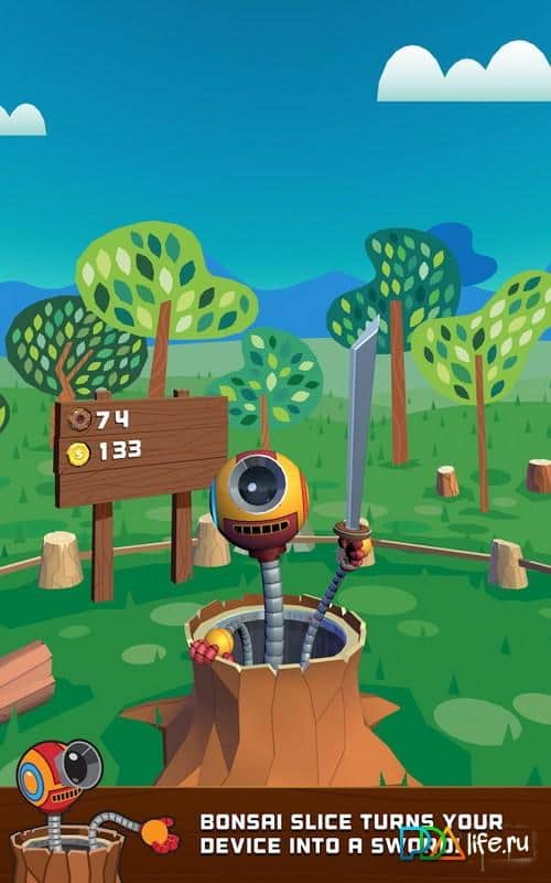 Bonsai Slice - игра которая превратит ваш девайс в меч. С помощью этой игры вы смоете разрезать на куски пончики, монетки, магнитофоны, грибы и яблоки, но остерегайтесь бомб, которые при прикосновении могут взорваться. В игре много различных мечей, которые можно использовать и проверить их уникальные особенности. Захватывающая игра в которой вы сможете соревноваться со своими друзьями за высшие места в таблице лидеров.