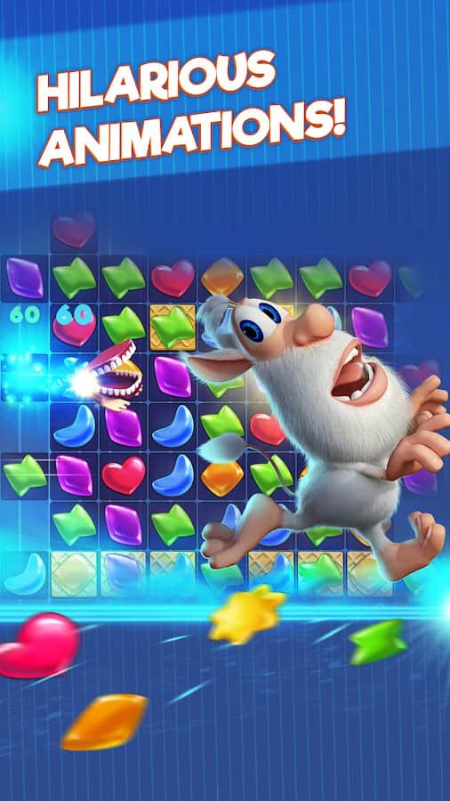 Booba Candy Adventure - аркадная головоломка из серии три в ряд главным героем которой стал популярный персонаж Бубба, известный своим непоседливым характером и юмором. Вот в компании этого героя вам и предстоит пройти более 120 уровней комбинируя одинаковые элементы по три в ряд и более и выполняя различные задания. Помимо приятной рисованной графики вас ждет масса приключений и целая история которая расскажет вам обо всем происходящем.