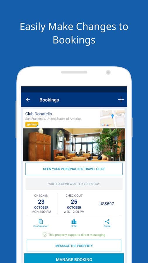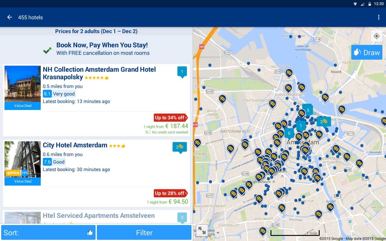 Booking.com Hotels & Vacation Rentals - лучшее приложение по быстрому поиску и бронированию отелей, домов и апартаментов, имеющее высокий рейтинг среди тысячи пользователей всего мира. Не знаете, где комфортно разместиться во время путешествия или отпуска? К вашему вниманию более миллиона отелей на любой вкус, найти которые не проблема при помощи настраиваемого поиска, удобного фильтра, в том числе и по местоположению. Зарегистрировать номер можно без распечатки и карты, есть возможность срочного бронирования в один клик. Служба поддержки работает круглосуточно на нескольких языках, а создание собственного аккаунта дает больше возможностей для выбора лучшего для вас варианта.