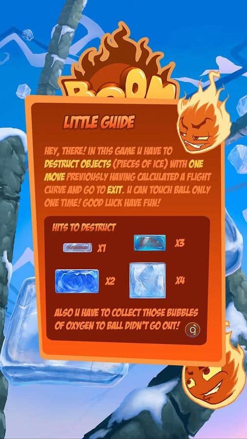 Boom Ball – управляйте полетом огненного шара и уничтожайте с помощью него каменные стены и ледяные блоки. В этой игре вашей задачей будет запускать шар в полет и рассчитывать так его траекторию полета, чтобы уничтожить все разрушаемые преграды на пути. Разрушить все преграды на пути будет не так и просто некоторые объекты потребуют двойного удара для полного уничтожения. В игре представлено более 16 уровней, сложность которых будет увеличиваться в геометрической прогрессии. Играйте в эту игру и набирайте достаточное количество точных попаданий по объектам и поднимайтесь все выше в таблице лидеров и достижений.