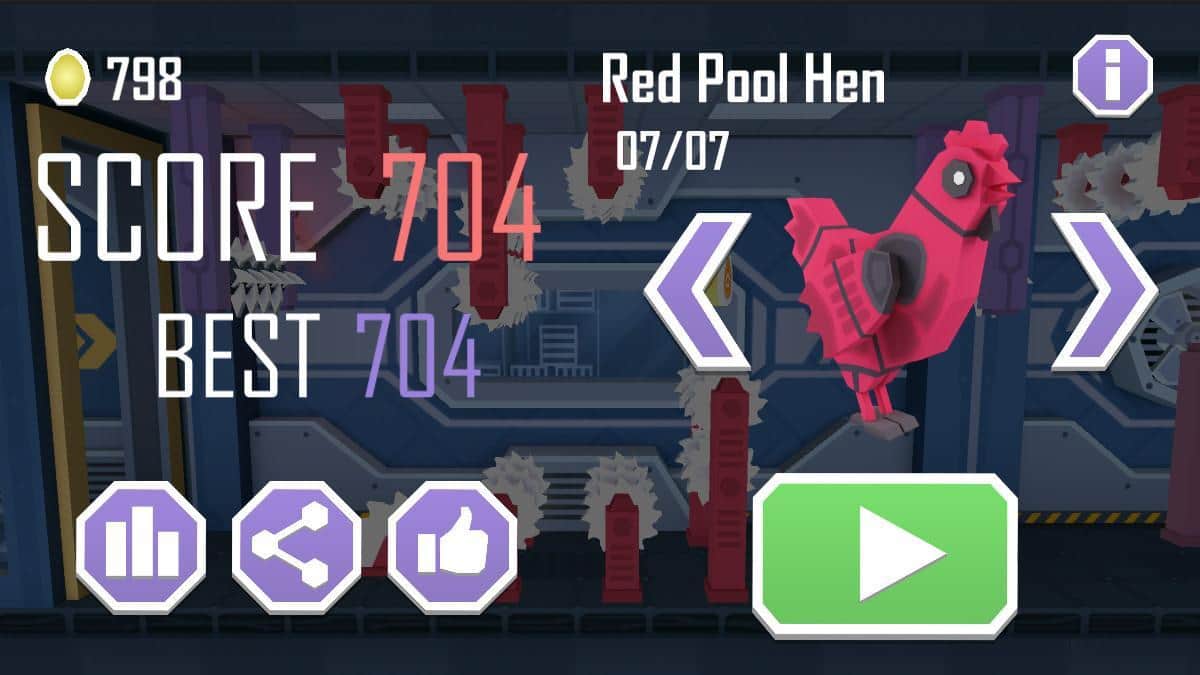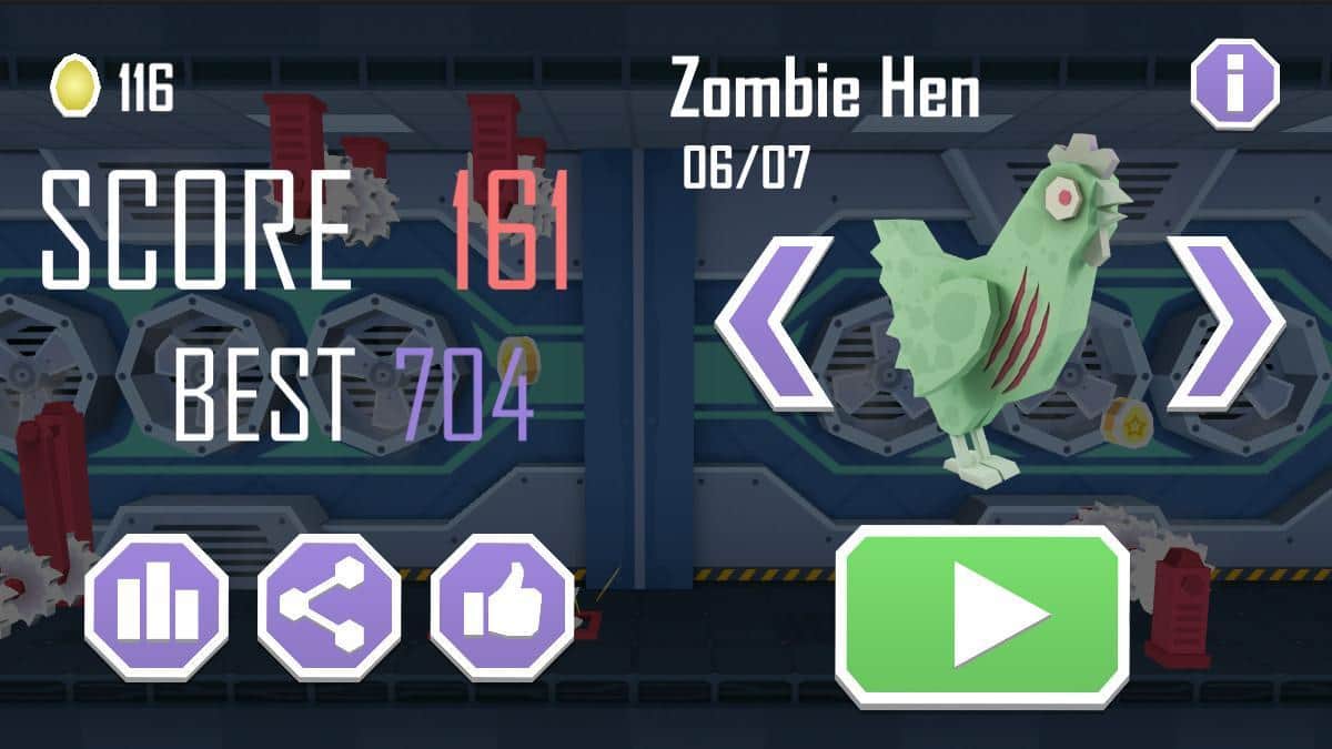 Boom Hens - Весьма забавная игра, в которой вам предстоит играть за курицу! Да именно так, вы курица, которая любой ценой должна выжить. А с учетом того что вы не можете остановится, придется хорошенько постараться. Ваша задача весьма простая, нужно во время тапать по экрану, однако иногда нужно задерживать что бы пролететь ужасные ловушки. В виде ловушек у вас будут настоящие мясорубки, стоит вам к ним прикоснутся, и вы больше не курица, а обычный паштет. Очень простая задумка, но весьма хорошее исполнение, с приятной графикой. К тому же собирая монеты, вы сможете разблокировать новых героев.