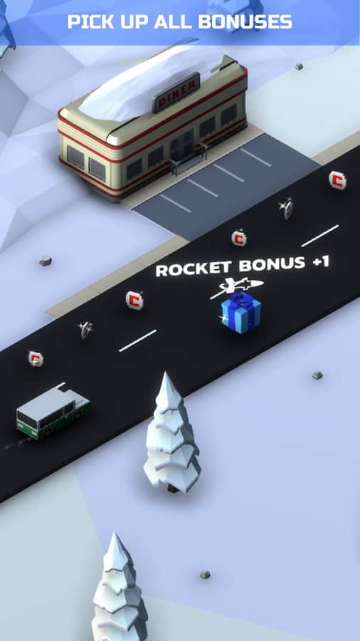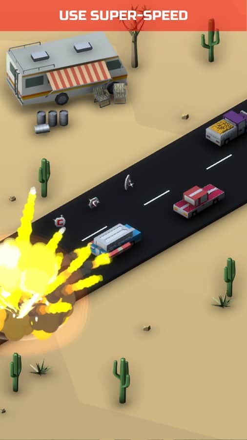 Boom Road 3d drive and shoot – гонки на андроид, где вы будете выступать в роли плохого парня. В этой игре вы сядете за руль легкового автомобиля и будете гонять по оживленному шоссе стараясь уйти от преследования полицией. Выпускайте специальные ракеты, чтобы взрывать машины и вертолеты полиции, а также проезжайте как можно ближе к другим машинам, чтобы заработать как можно больше очков за риск. Попробуйте продержаться как можно дольше в этой игре и установить свой рекорд. Открывайте новые машины, которых в этой игре представлено более 30, а также красьте их в разные цвета. По пути собирайте монетки и открывайте новые возможности.