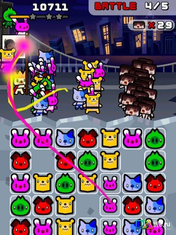 Начав своё путешествие в крупном городе, вам предстоит побывать во многих местах нашего мира, чтобы сразиться с врагом. Комбинируйте одинаковых зверушек, чтобы отправлять их в бой. А создавая комбо вы будете получать дополнительные возможности для вашей армии.