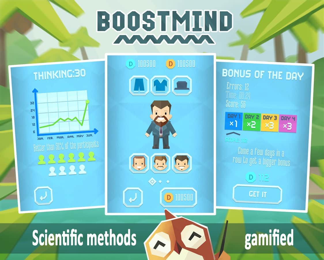 Boostmind - brain training – головоломка на андроид, которая будет тренировать ваши умственные способности и интеллект. В этой игре вам предстоит решать непростые задачи, многочисленные головоломки и упражнения которые подберет для вас персональный тренер, чтобы вы развивали свою память, логику, мышление, рефлексы и многие другие способности, которые пригодятся вам в обычной жизни. Эта игра подойдет как для взрослых так и для детей, где вы будете играть в мини-игры и весело проводить свое свободное время при этом тренируя свой мозг. Наблюдайте за своим прогрессом в этой игре и отслеживайте себя в таблице лидеров, соревнуясь с лучшими игроками за первые места.