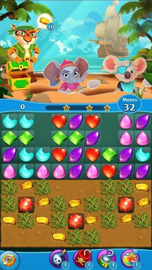 Booty Quest - Pirate Match 3 – увлекательная игра из жанра три в ряд на андроид, где вы будете выступать в роли пирата и покорять семь морей. Отправляйтесь в захватывающее путешествие, исследуя заброшенный остров и собирая многочисленные сокровища. В этой игре вы вместе с Пайпер и ее друзьями будете составлять ряды из разноцветных камней и взрывать их, наслаждаясь красочными спецэффектами. Одержите победу над королевой всех пиратов и соревнуйтесь с друзьями за лучшие результаты. Покорите все семь морей и соберите все сокровища этой игры. Отыщите клад и наполните свои сундуки золотом.