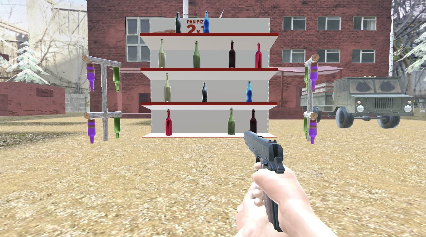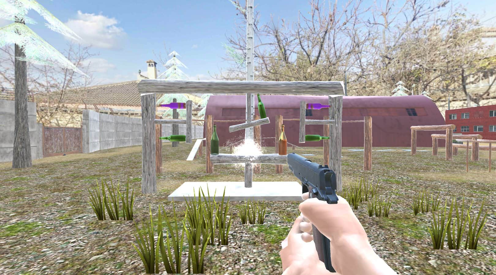 Начните тренироваться в стрельбе с оружия по бутылкам, чтобы в дальнейшем в других играх не промахиваться и поражать других игроков точной меткостью. Бутылки будут находиться как в легких, так и сложных местах. Сложность будет повышаться, они начнут вращаться по разным поверхностям или становиться дальше от вас. Больше 300 испытаний, широкий выбор оружия, несколько режимов (включая свободный и на время) и полная сосредоточенность на целях. Побывайте на пляже, базе военной подготовки и других картах, где все происходит.