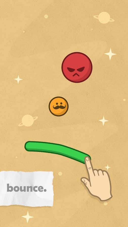 Bounce Sir – тайм киллер на андроид, где вы будете управлять мячиком который прыгает используя батуты. Возьмите под свой контроль усатый мячик и проведите его по многочисленным уровням игры, поднимая его как можно выше рисуя в нужном месте для него батуты, об которые он будет отскакивать. Мячик двигается в хаотичном порядке, отскакивая от батутов, точно рассчитывайте траекторию его полета и в нужном месте рисуйте батут. Главная ваша задача будет не ошибиться с углом наклона батута и его расположением. Чем выше допрыгает ваш мяч, тем больше очков вы заработаете. Игра отлично подойдете для короткого перерыва или свободного времяпрепровождения.