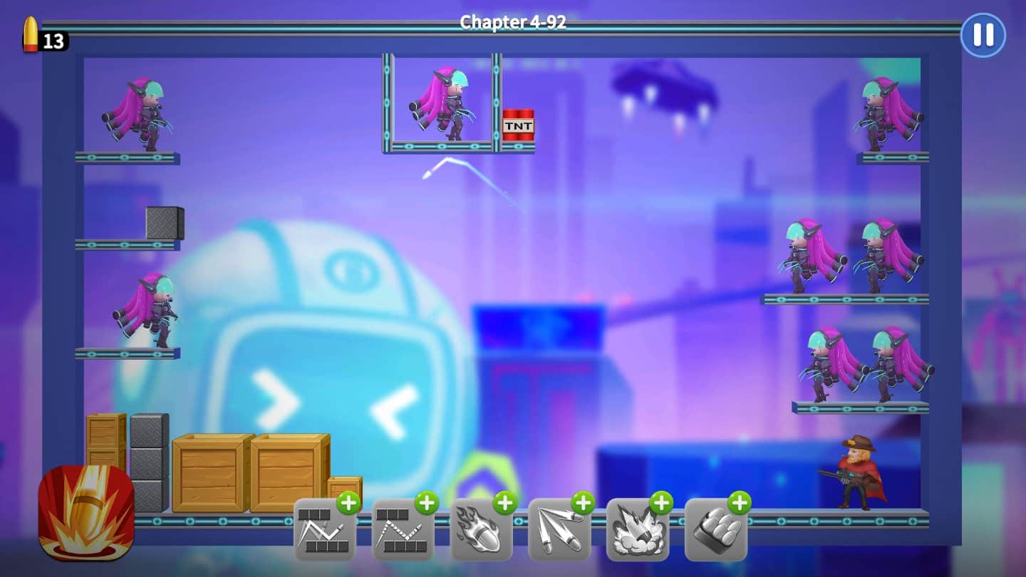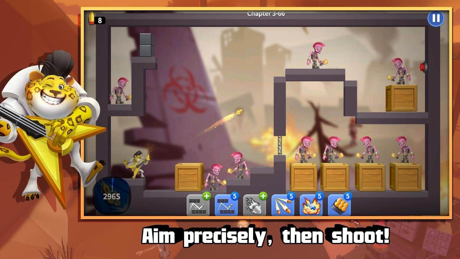 Bouncing Shot – занимательная аркада на андроид, где вы будете уничтожать многочисленные цели. Выбирайте себе героя из представленных в игре персонажей каждый из которых будет обладать уникальными навыками и оружием. Эта игра сочетает в себе стрельбу по мишеням и решение многочисленных задач и головоломок. Путешествуйте по фантастическим мирам таким как: Zombie Region, Twilight Land, Mecha и выслеживайте, и уничтожайте свои цели. Каждый герой в игре имеет свой собственный секрет для победы, так что применяйте его на деле. Точно попадайте по целям, набирайте очки и соревнуйтесь с другими игроками за лучшие результаты.
