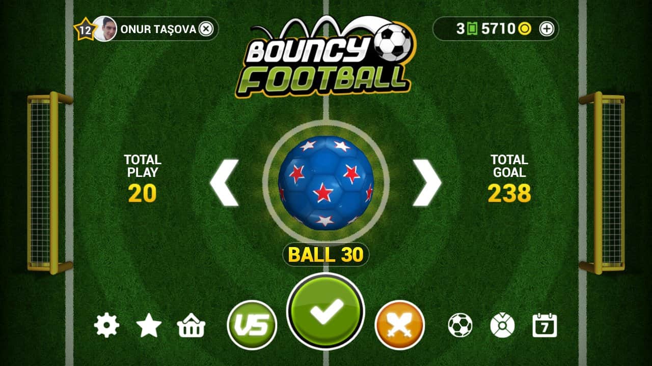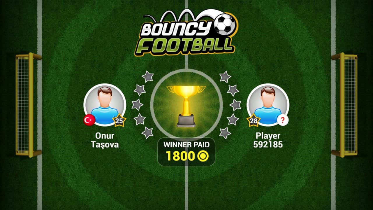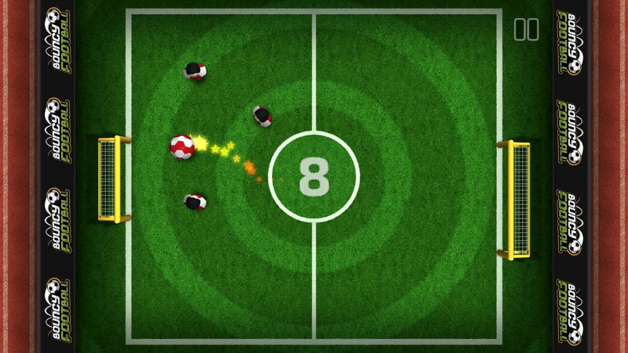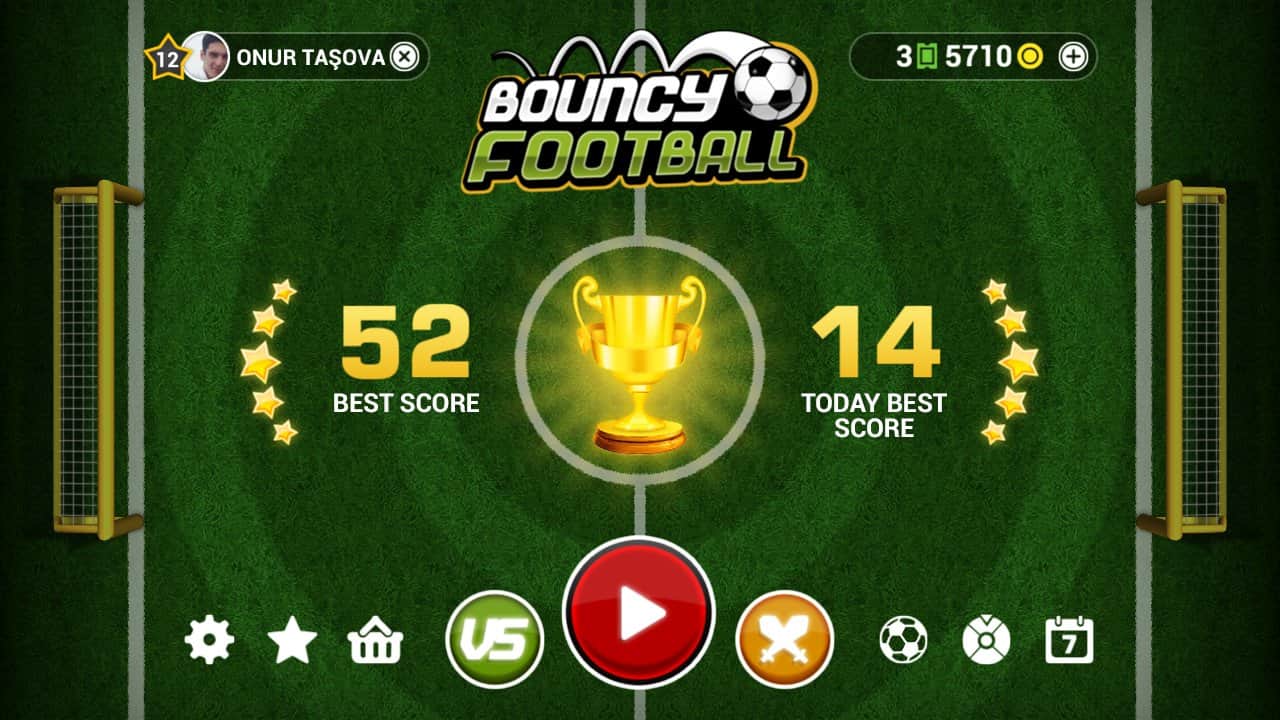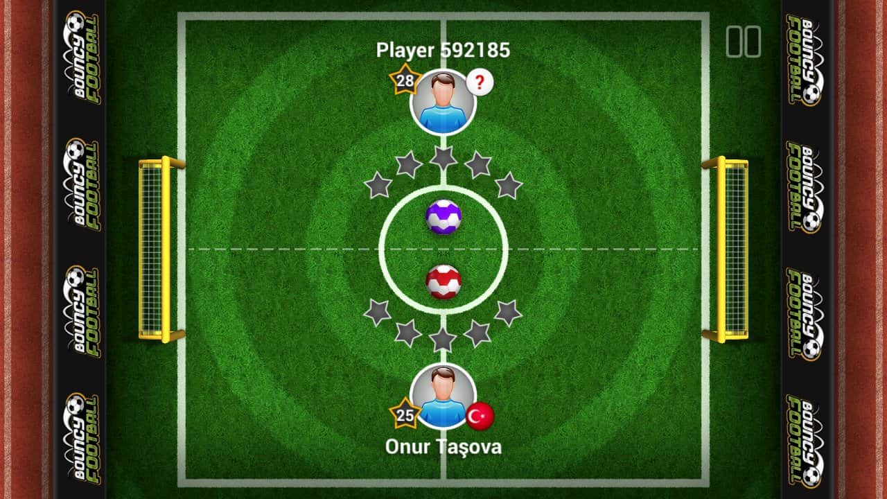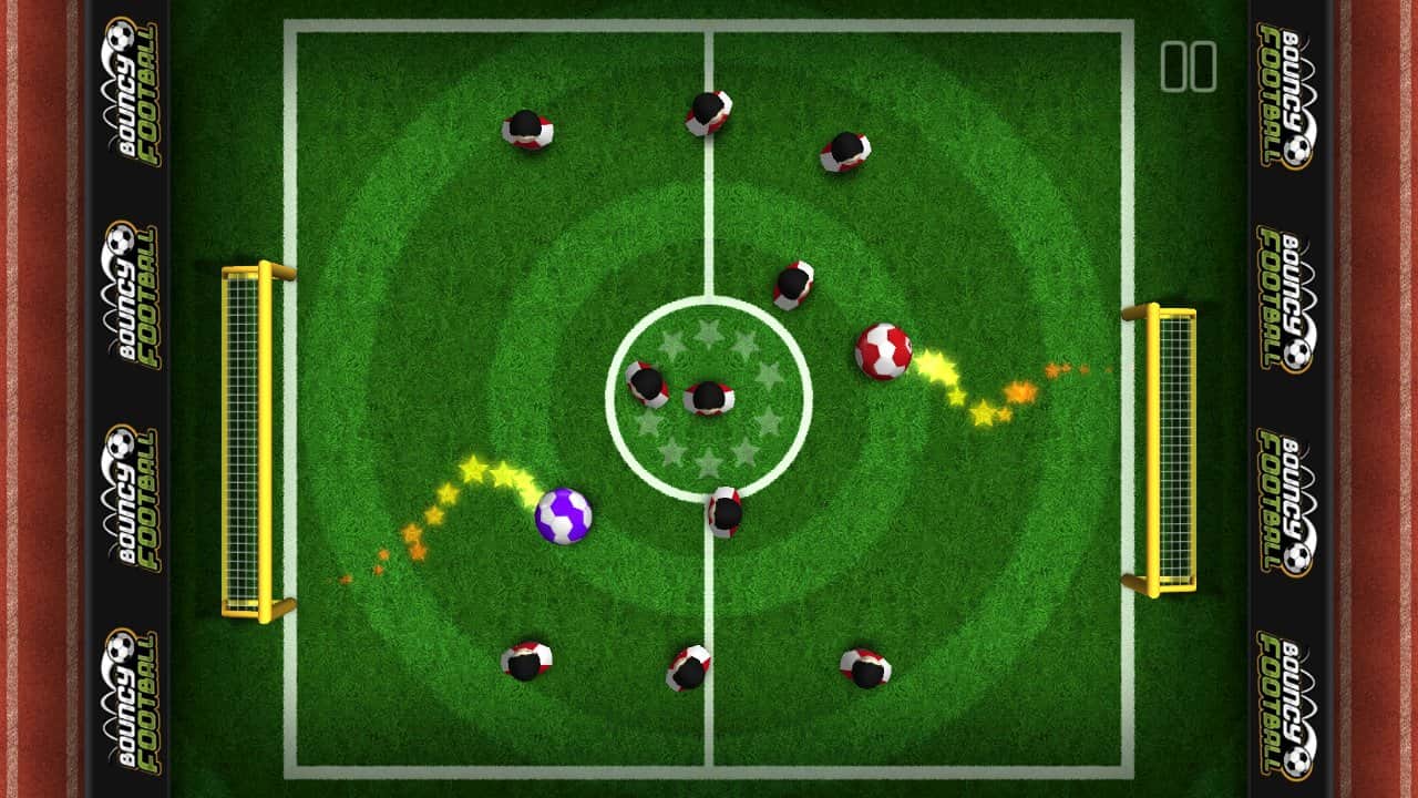 Bouncy Football – спортивная игра на андроид, где вы будете забивать голы в ворота противника. Управляйте движением мяча и перемещайте его по полю из стороны в сторону пытаясь попасть в футбольные ворота. Тренируйте свои навыки, играя против компьютера, а также бросайте вызов опытным игрокам и старайтесь забить им как можно больше голов. Постоянно следите за перемещающимися воротами и защитниками, которые могут не дать вам забить решающий гол. Также учитывайте возможность мяча отскакивать от различных объектов, в том числе и о границы поля. Установите свой рекорд в этой игре и откройте все игровые поля и мячи. Играйте в эту динамичную игру со своими друзьями и попробуйте в действии все три режима игры.