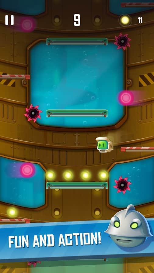 Bouncy Tins - забавная и динамичная аркада в которой вам предстоит играть в роли незадачливого робота который оказался в трудной ситуации и вам необходимо помочь вырваться из застенок секретной лаборатории. Игровые локации выполнены в вертикальном стиле, на каждом из уровней вас будет ожидать набор горизонтальных платформ, кроме этого на уровне вас будут поджидать различные враги и ловушки которых вам и предстоит избегать на пути к свободе. Приятная графика, простое управление, и забавный персонаж позволят вам весело провести время.