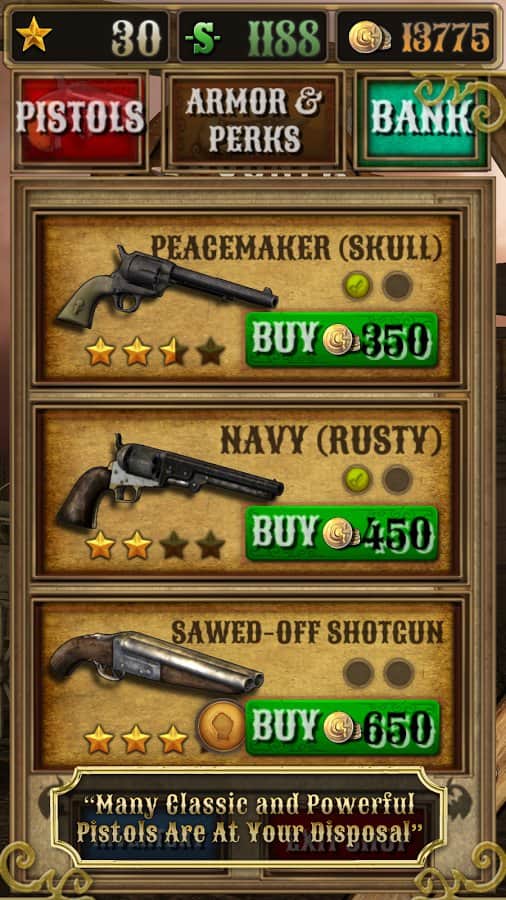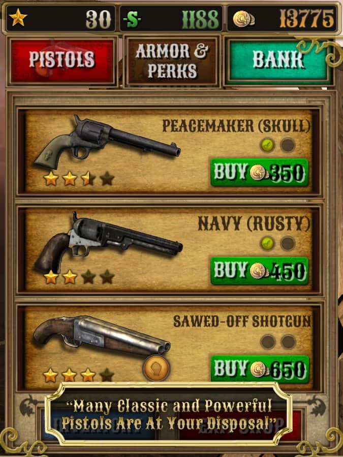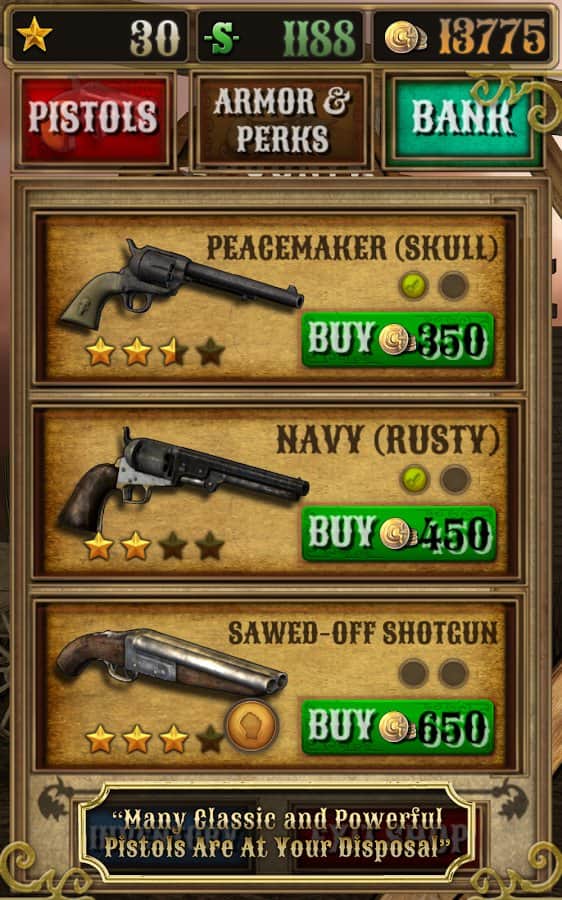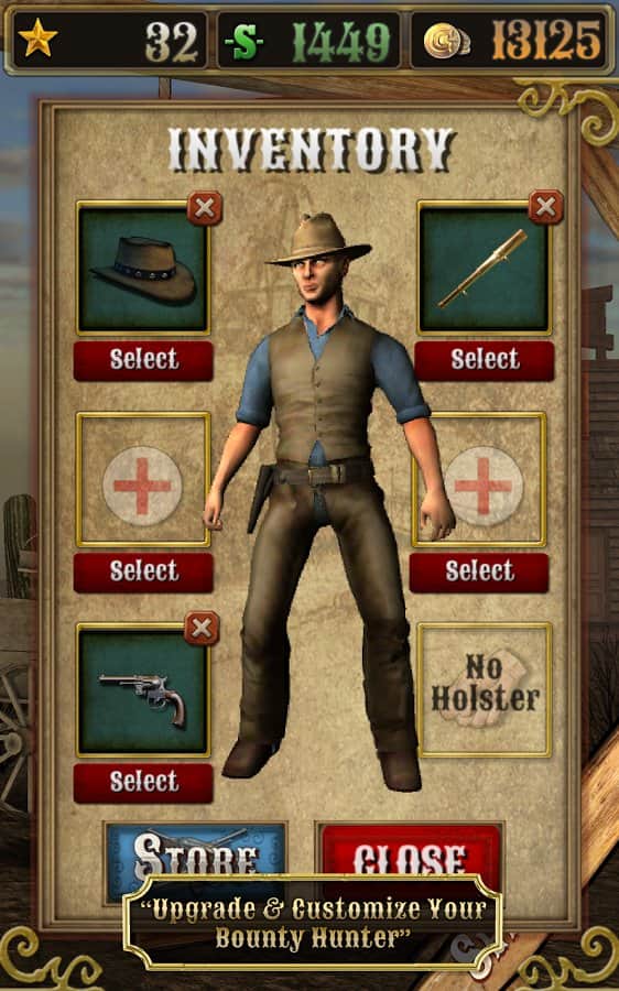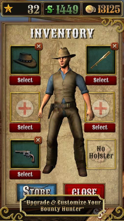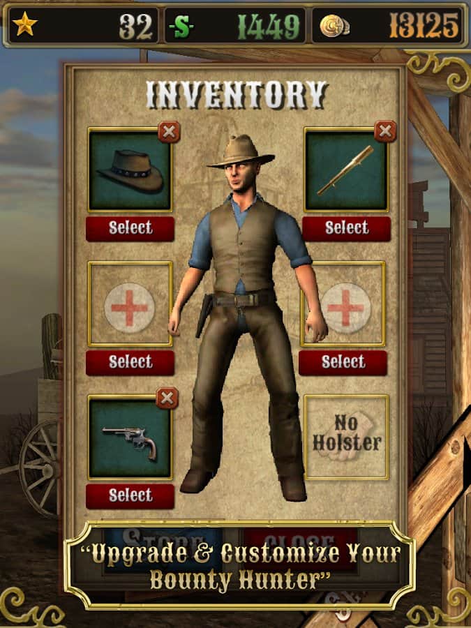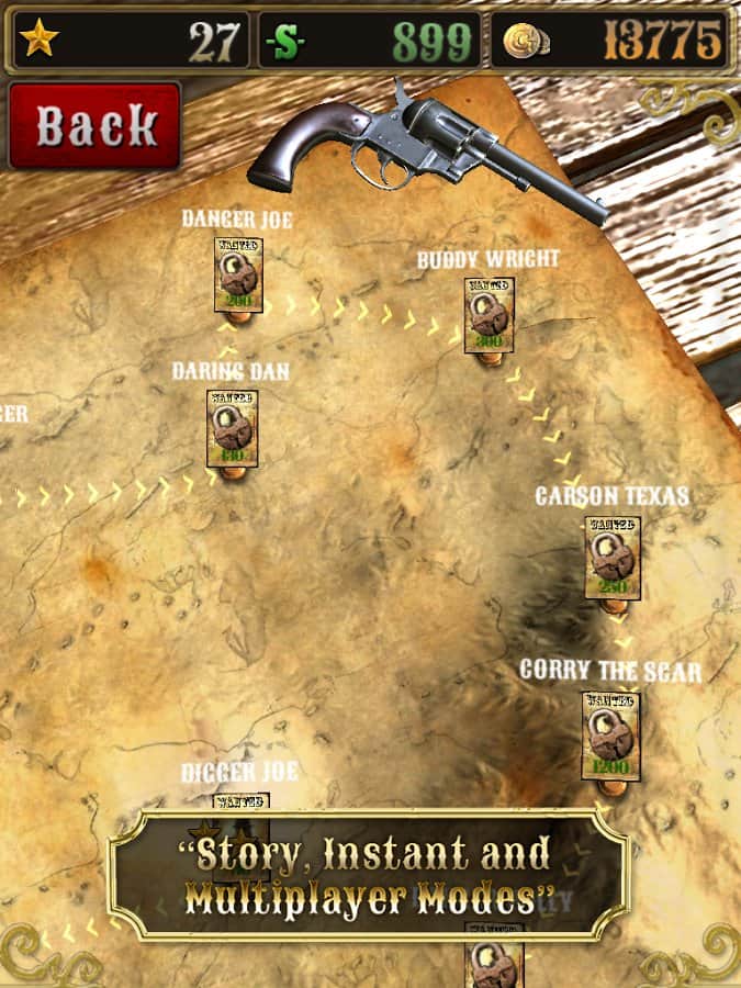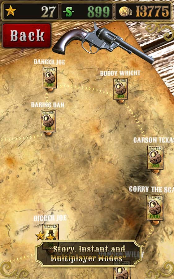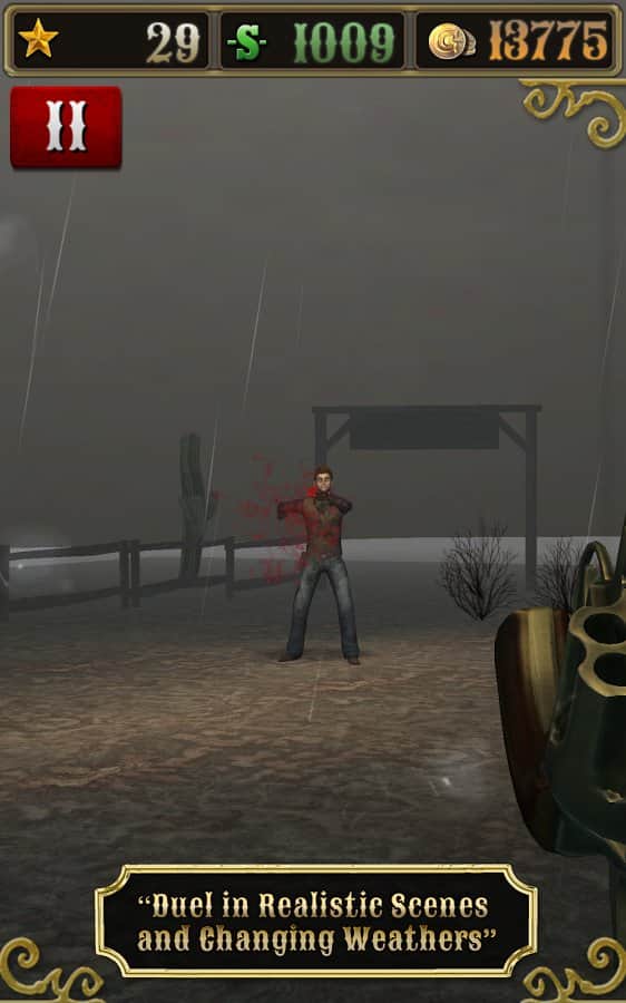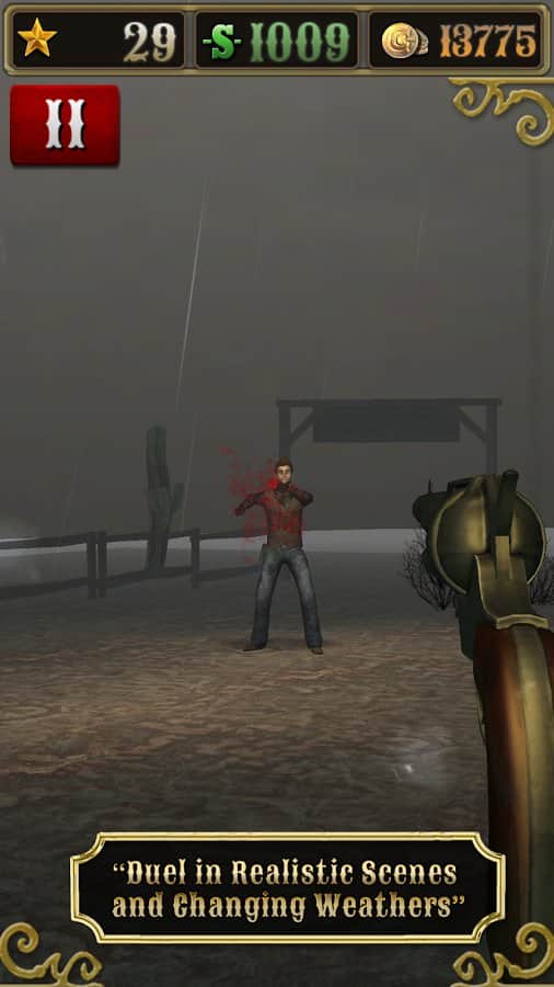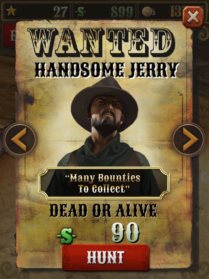 Bounty Hunt : Western Duel – Дикий Запад. Где слово ничего не решает, а споры решаются только с помощью револьверов. Отъявленные подонки бродят по нашим территориям и за их головы практически всегда назначена награда. Всё просто находим злодея, убиваем его получаем награду, за которую можно купить совершенно новенький и более практичный револьвер, который непременно послужит вам верой и правдой. Только помните ,что отъявленные головорезы просто так никогда не сдадутся. Если надоело отстреливать компьютерных ботов, тогда вперёд на pvp поединки против других реальных игроков.