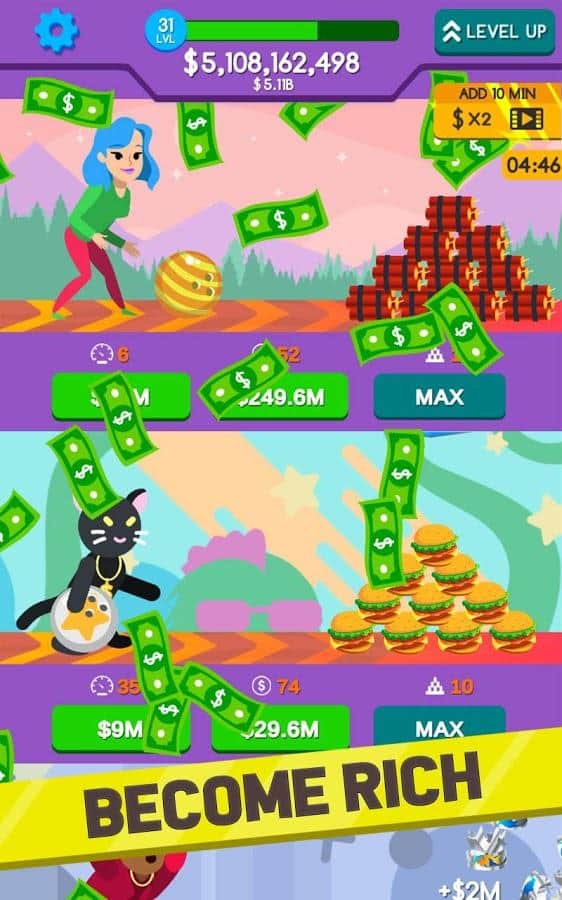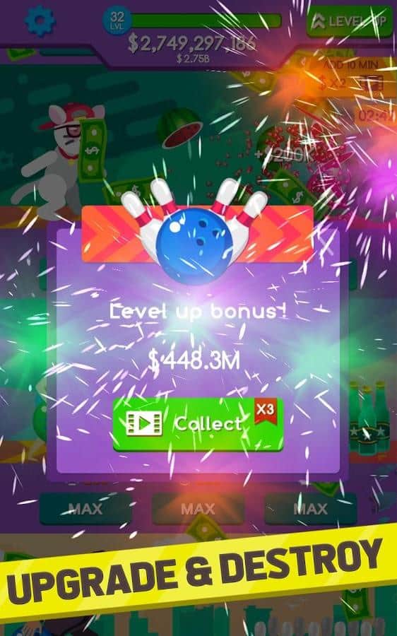Bowling Idle - Sports Idle Games – кликер на андроид, с элементами игры-менеджер. В этой игре вы будете выступать в роли управляющего боулинг-центром который хочет развить свой бизнес и увеличить количество посетителей. Улучшайте и прокачивайте оборудование для боулинга, увеличивайте количество шаров и открывайте новые дорожки. Касайтесь экрана своего телефона или планшета в нужный момент и сбивайте кегли одним точным ударом. Начните с небольшой дорожки и развивайте и расширяйте ее. Открывайте новые зоны для боулинга и таким образом привлекайте больше посетителей. Играйте в эту игру в любое свободное время и выполняйте многочисленные задания.