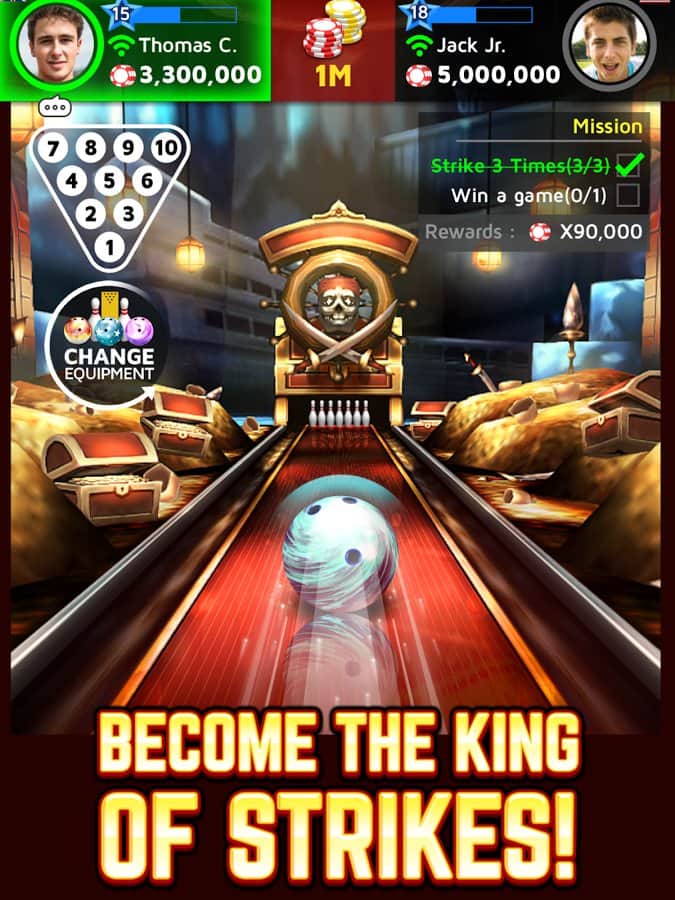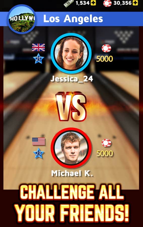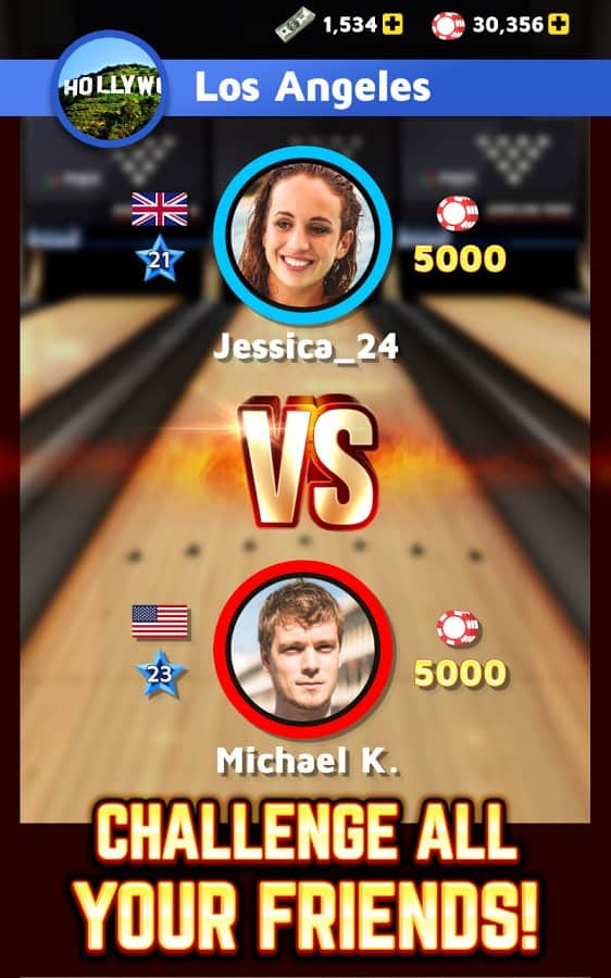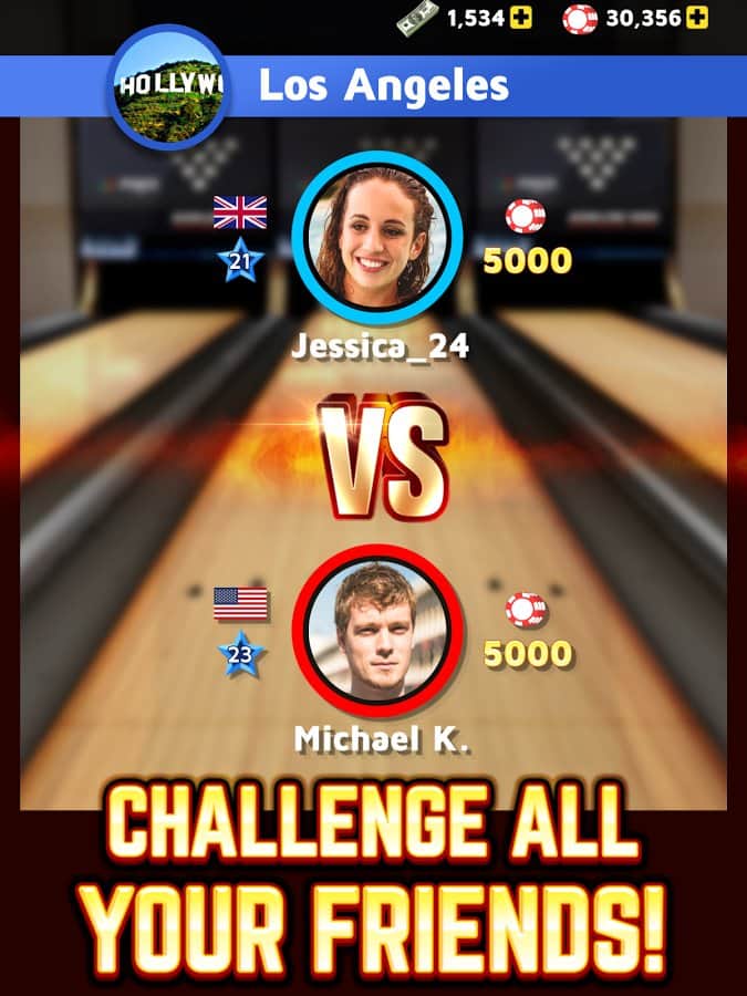 Bowling King – отличный боулинг на андроид, для игры со своими друзьями в режиме реального времени. В этой игре вы сможете играть в режиме мультиплеер с игроками со всего мира. Игра порадует вас легким управлением и большим количеством боулинг клубов в разных уголках нашей планеты, где вы сможете выбрать из более чем 60 шаров, а также установить понравившуюся дорожку. Бросьте вызов лучшим игрокам и поднимитесь на самый верх в таблице лидеров и достижений. Помимо боулинга, играйте в мини игры автоматы и рулетки. Заработайте более 120 достижений и наберите достаточное количество очков.