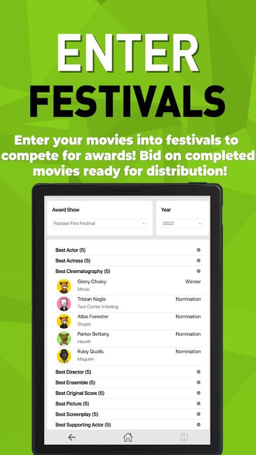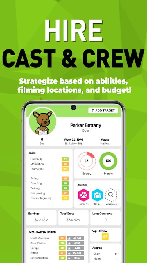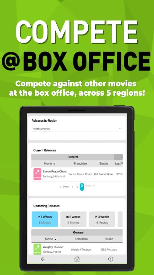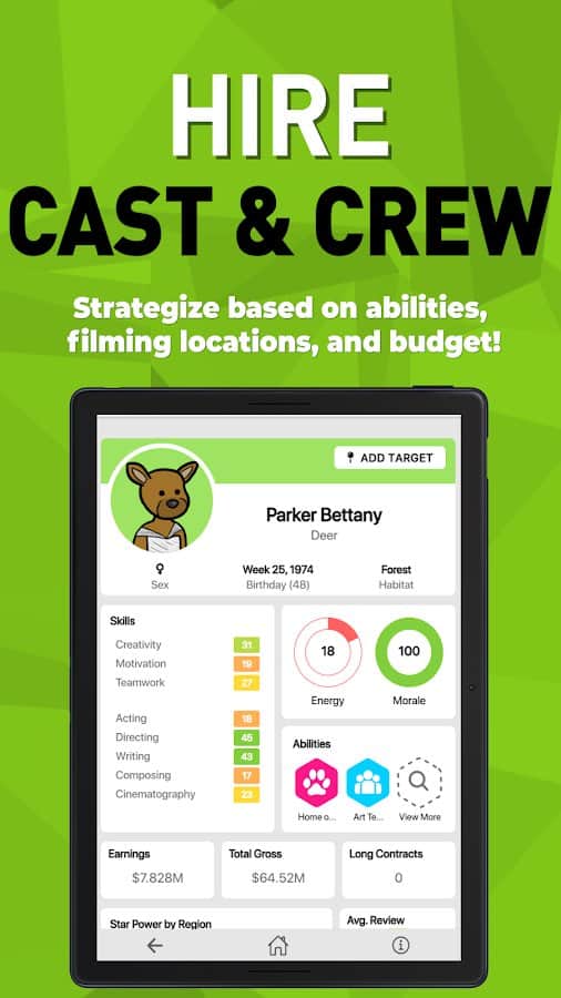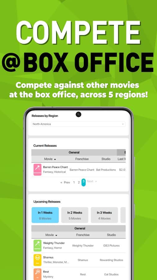 Box Office Sim 2 - игра где тебе предстоит занять место босса собственной киностудии. Начни свой путь с маленькой инди-студии и проверь, сможешь ли ты преодолеть все препятствия и превратиться в одного из гигантов киноиндустрии. Придумывай свои уникальные сценарии или покупай готовые идеи на рынке, заключай контракты с актерами и веди переговоры с ними. Выбери подходящую дату релиза и запусти мощные рекламные кампании, чтобы сделать старт фильма максимально успешным. Снимай потрясающие фильмы и ставь целью получение главного приза на главных кинонаградах года. Покоряй кинофестивали по всему миру и докажи свое мастерство в киноиндустрии! Тебе предстоит узнать, хватит ли у тебя ума и таланта, чтобы взобраться на вершину славы, начав с низкобюджетных инди-фильмов и заканчивая созданием анимационных шедевров и грандиозных блокбастеров.