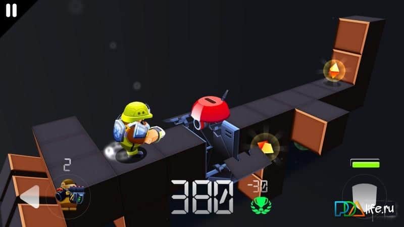 В последнее время создатели аркад все больше стараются удивить игроков новыми идеями и это вполне объяснимо, ведь данный жанра довольно широко представлен на мобильных платформах. Box Runner - довольно оригинальный трехмерный платформер с элементами ранера, выполненный в изометрическом виде. В целом игровой процесс уже не нов, управляя героем ваша задача двигаться по трассе при этом перепрыгивая через блоки, уворачиваясь от вражеских роботов и собирая всевозможные кристаллы. Однако есть одна особенность которая в корне меняет привычный геймплей, трасса появляется по мере движения по ней, так что на пути вас будет ждать масса сюрпризов.