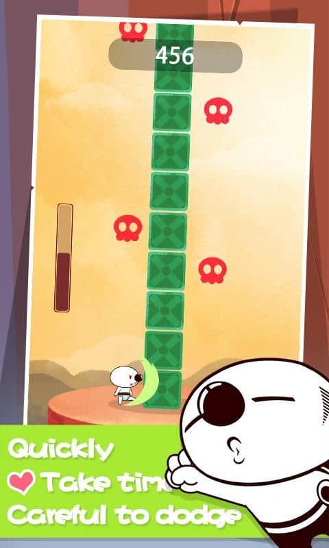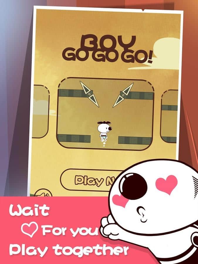 Сюжет игры покажется простым, но Boygogogo требует невероятной сноровки и реакции. Смысл заключается в том, что мальчик пытается пройти сложный маршрут, где нужно перепрыгивать препятствия. Игроку остается вовремя нажимать на экран, чтобы персонаж перепрыгнул очередной объект. Нажимать нужно своевременно, ведь движение никогда не останавливается, промах приведет к большой шишке на лбу персонажа. Нажимай кнопку «Старт» и полностью сосредоточься на маршруте, чтобы не промахнуться в очередной раз и добраться до финиша здоровым и целым.