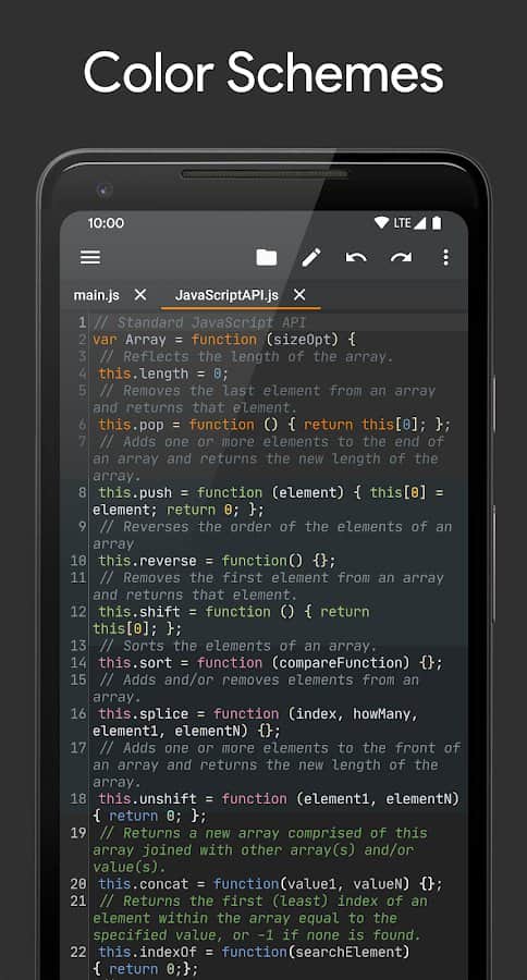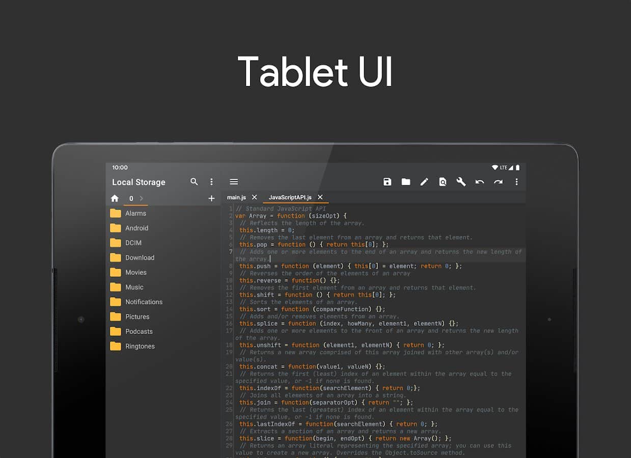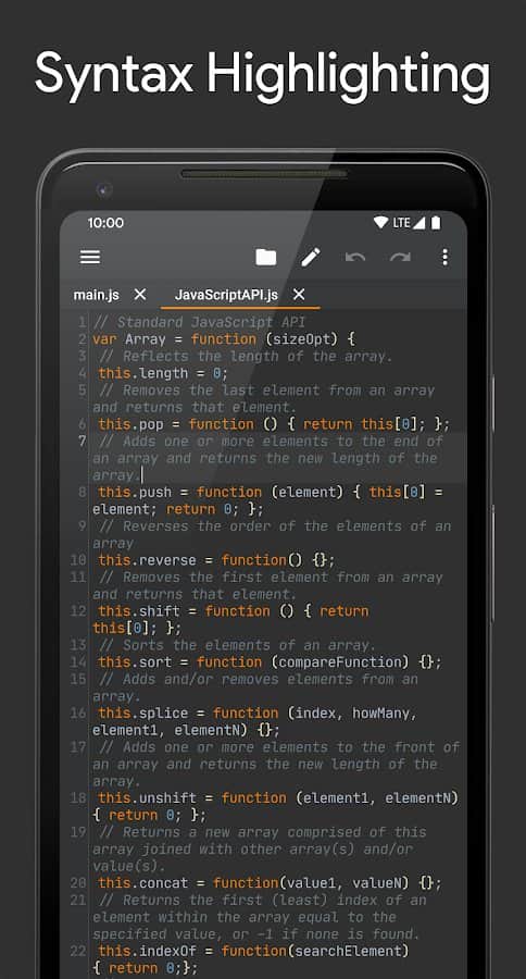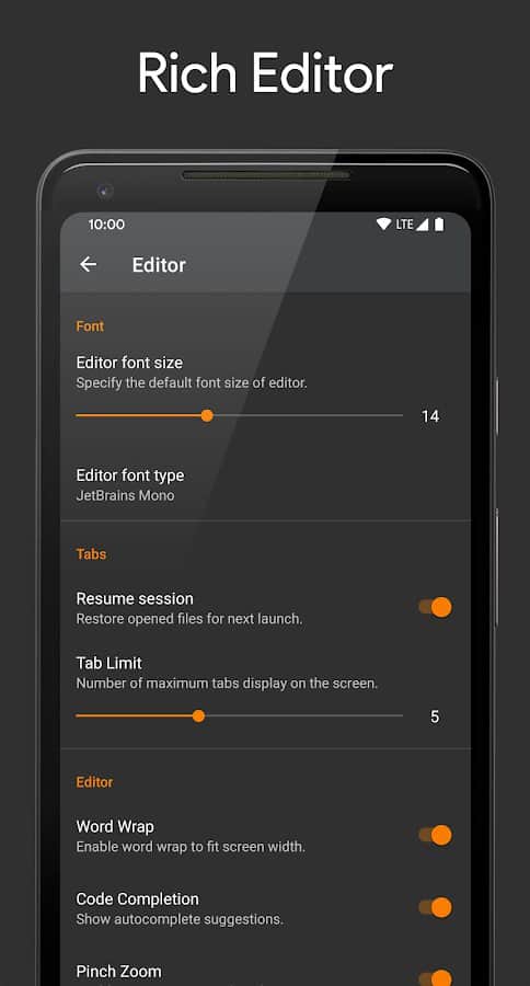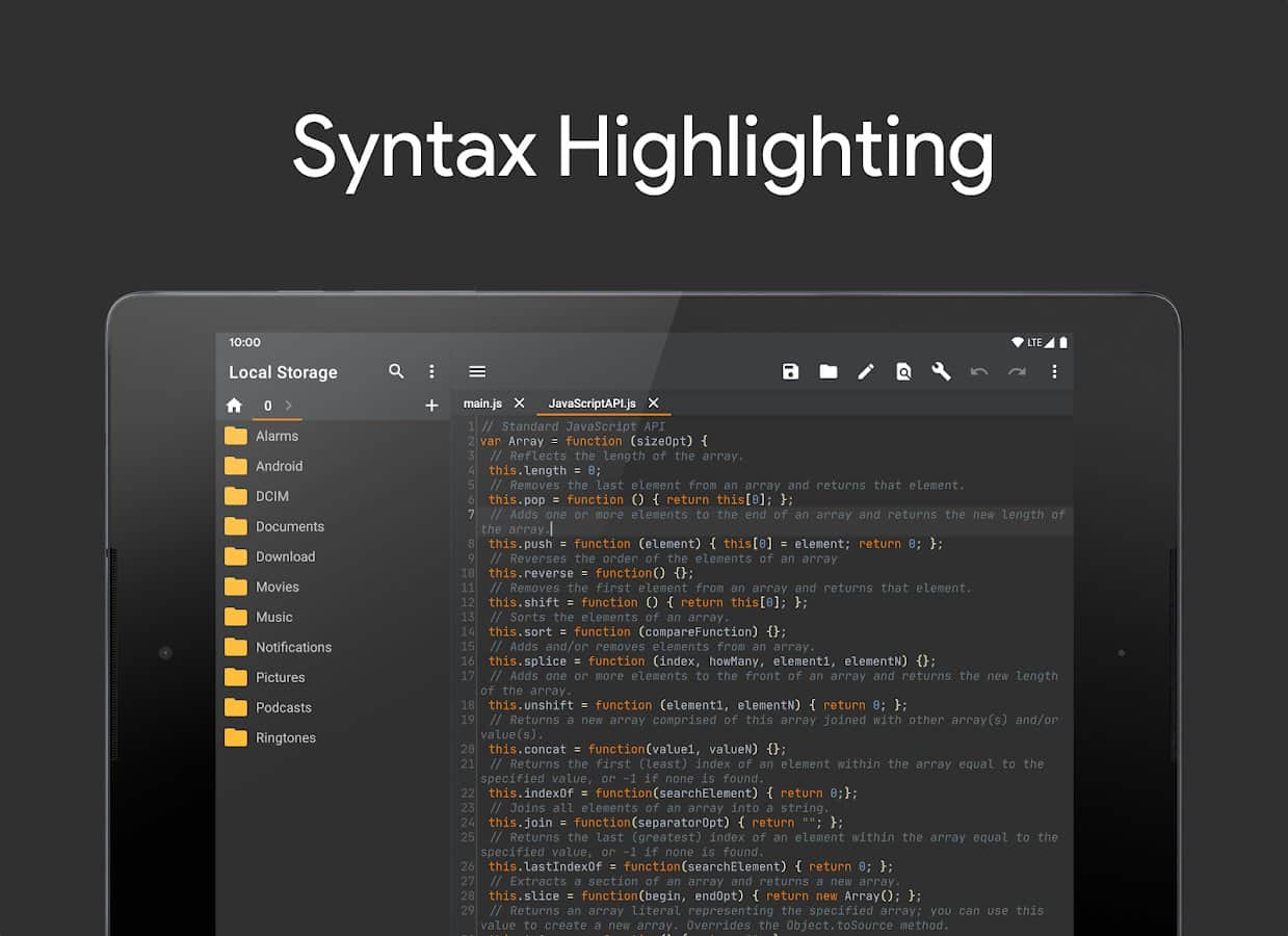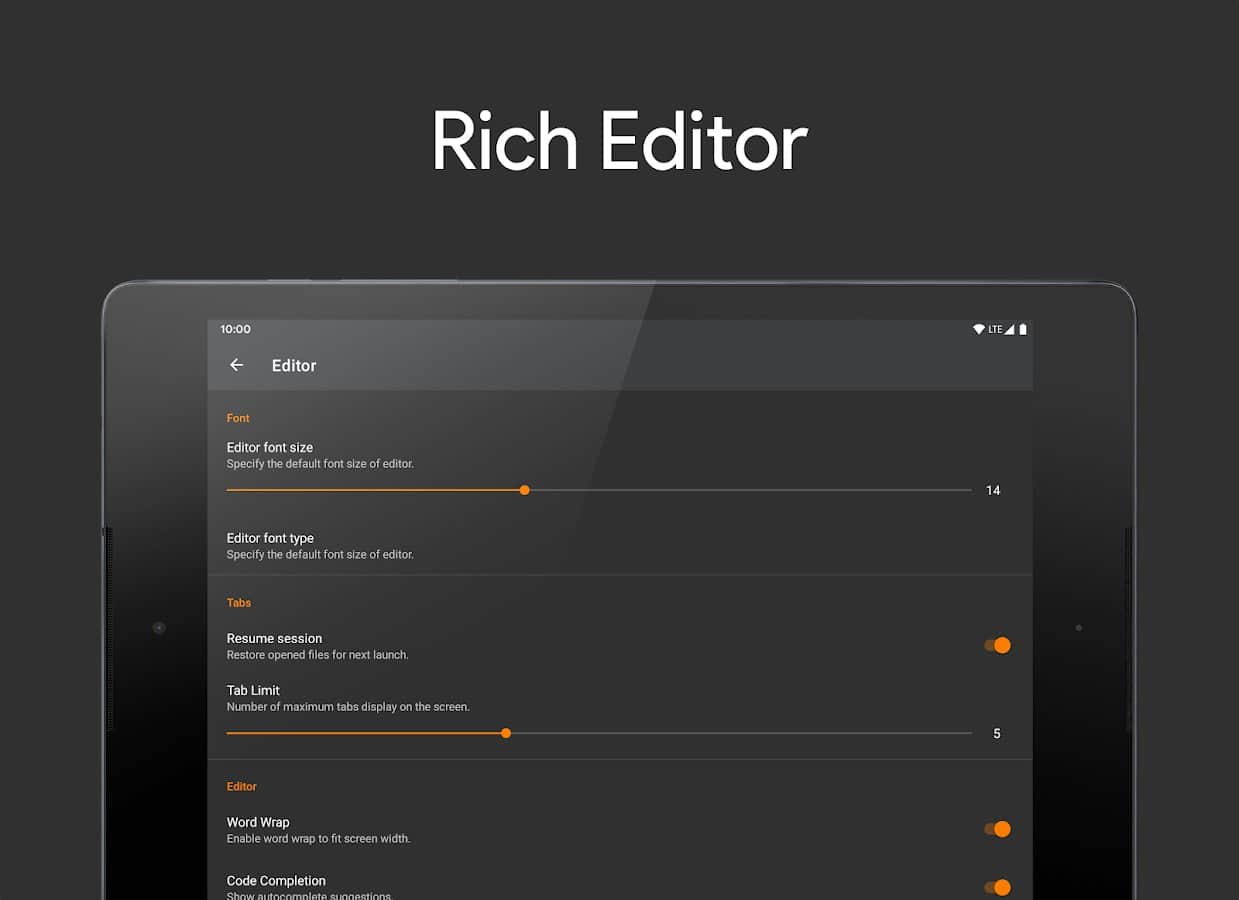 Приложение Brackeys IDE поможет вам распознать и редактировать некоторые языки программирования - ActionScript, C, C ++, C #, HTML, Java, JavaScript, Json, Kotlin, Lisp, Lua, Markdown, Python, Shell, SQL, Visual Basic, XML. Мгновенно увидеть нужный код поможет подсветка синтаксиса, а встроенный редактор позволит обеспечить базовое завершение, учитывая содержимое каждого файла. Пользуйтесь ключевыми словами, меняйте имена полей, исправляйте изменения, выделяйте ошибки в коде путем подсвечивания. Есть функция автосохранения внесенных изменений, а также при помощи кнопки "отмена" вы всегда сможете вернуться газад при допускании какой-либо ошибки.