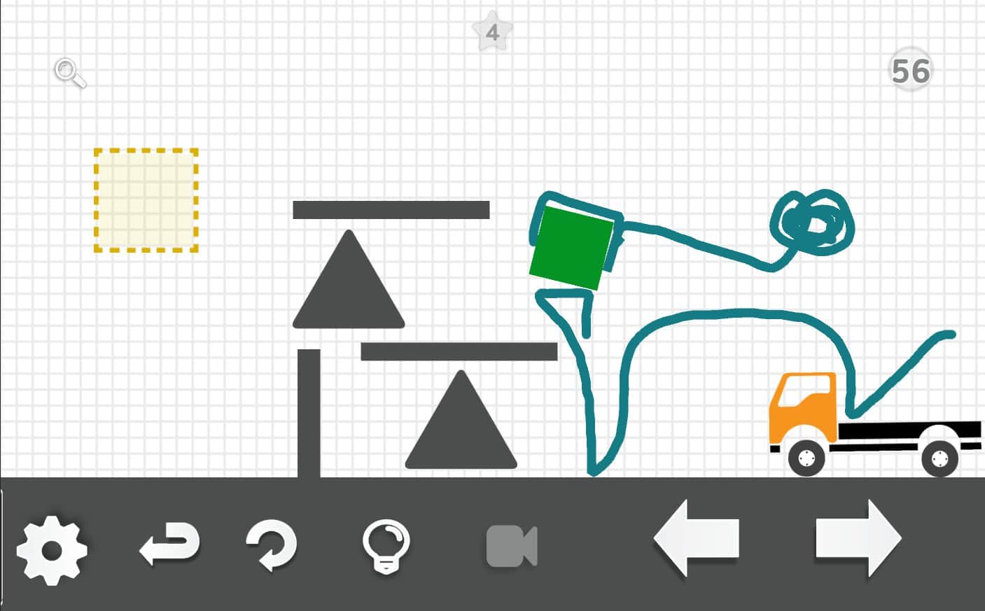 Brain it on the truck! – увлекательная игра головоломка на андроид, где вашей главной задачей будет переместить зеленый квадрат в желтую область. Цель этой игры на первый взгляд кажется очень простой, но сложность заключается в том что вам придется изрядно потрудиться прилагая всю свою фантазию что найти правильное решение. Рисуйте с помощью своего пальца различные фигуры, линии и объекты которые будут взаимодействовать с другими предметами и превращаться в физический объект. В этой игре вы не найдете единственно правильное решение, их может быть большое множество. С каждым новым уровнем сложность игры будет увеличиваться, и вы сможете прибегать к помощи подсказок.