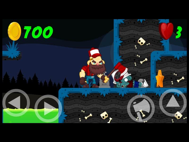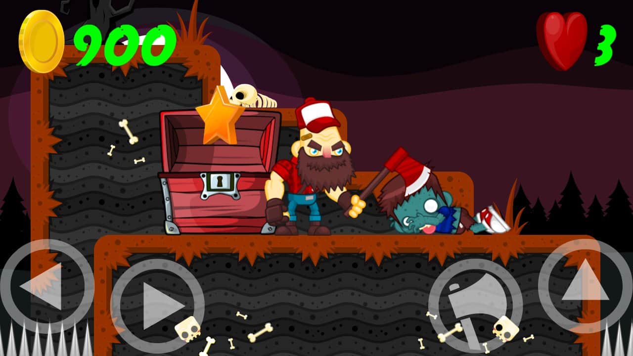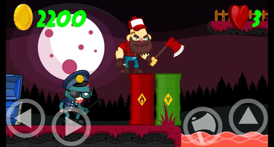Brainless Dead – игра на андроид, которая перенесет вас в пост апокалиптический мир где бушует опасный зомби-вирус. В этой игре вы будете помогать главному герою, вооруженному топором уничтожать всех зомби, попадающихся вам на пути. Путешествуйте по мрачным мирам и преодолевайте все препятствия вставшие у вас на пути. На экране вашего телефона или планшета находятся специальные кнопки, нажимая на них вы будете получать следующий результат, заставлять вашего героя прыгать по платформам или уничтожать зомби. Собирайте по пути все звездочки и отыщите спрятанные сундуки, которые добавят вам новых жизней.