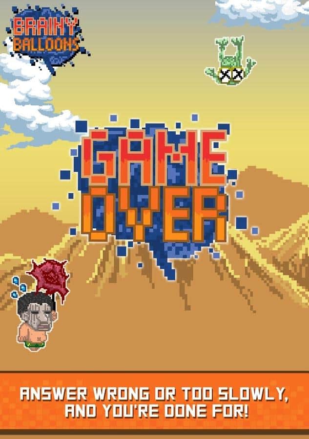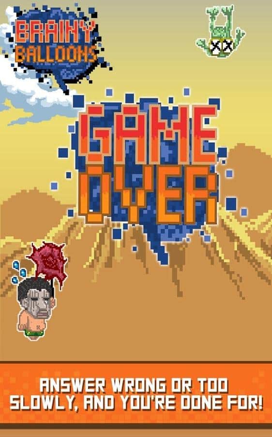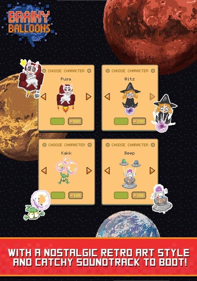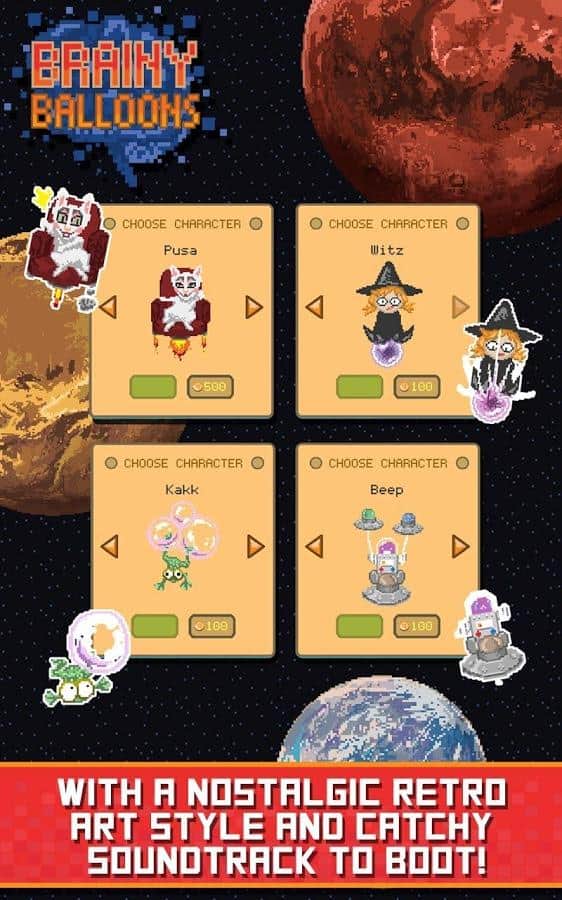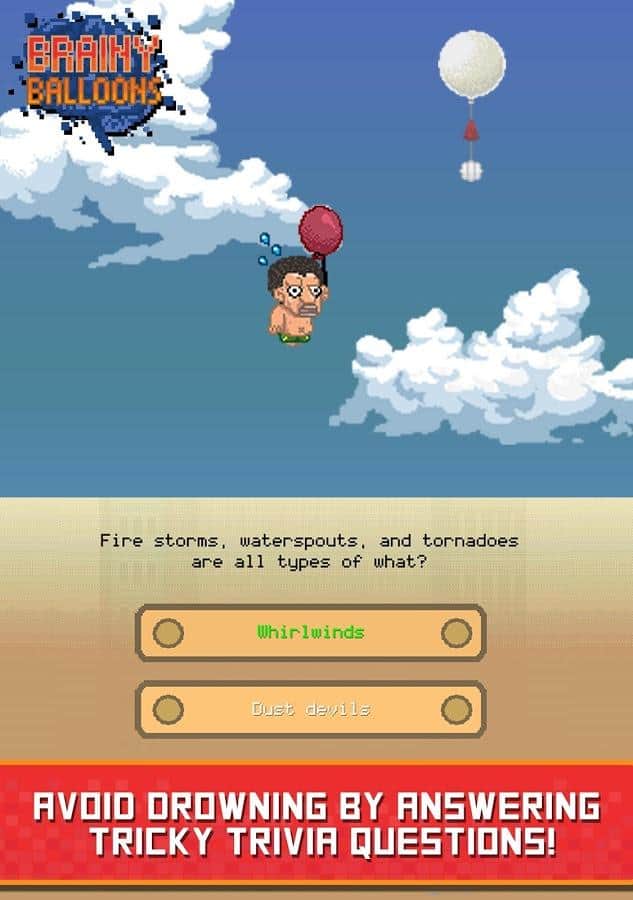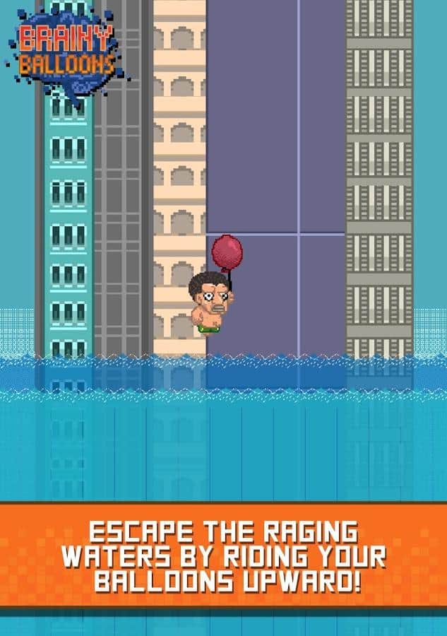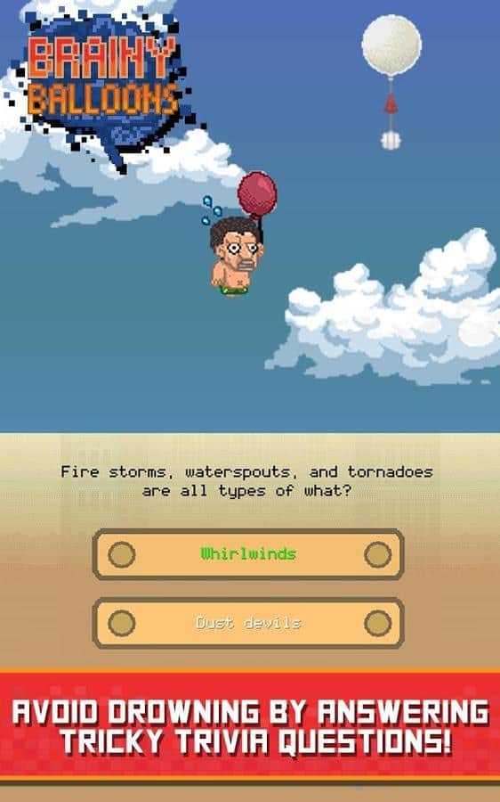 Brainy Balloons - игра сочетающая в себе элементы ранера и интеллектуальной викторины. Дело в том что пиксельный мир в котором живет ваш персонаж под угрозой затопления и единственный способ спастись от постоянно поднимающегося уровня воды это забраться повыше. Наш герой взяв в руки воздушные шары начал свое восхождение, но для того чтобы подниматься выше уму необходимо отвечать на всевозможные вопросы, о деталях сюжетной сюжетной линии разработчики умолчали и видимо оставили этот момент додумывать игрокам. Вопросы задаваемые герою из различных сфер жизни начиная от истории и заканчивая поп - культурой. Конечно же не обошлось и без элементов развития за достижение определенных высот вы будете получать призы в том числе возможность разблокировать дополнительных героев.