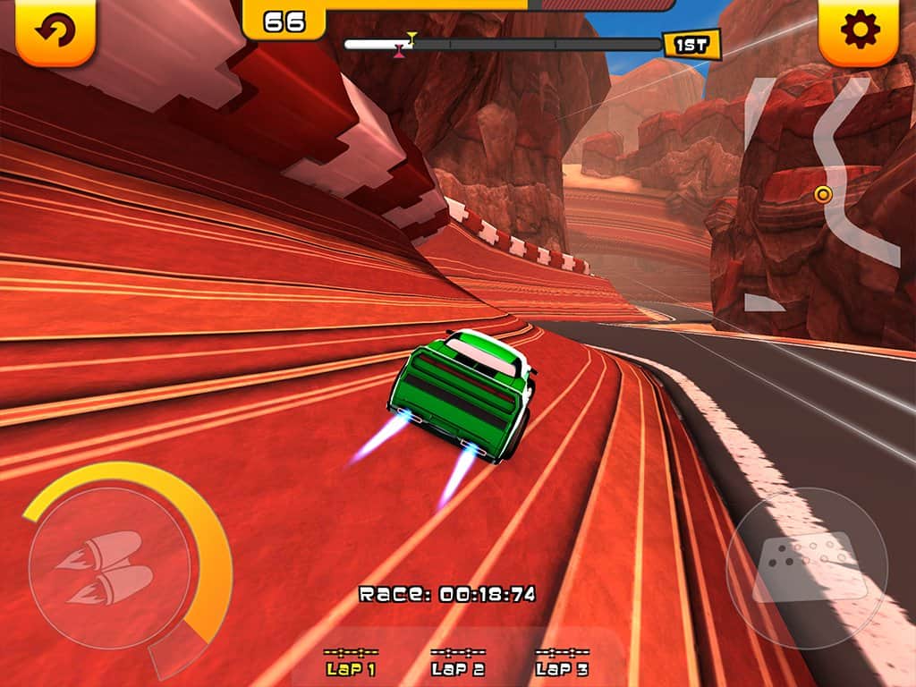 Brake To Win – аркадные гонки на андроид, с отличной 3D графикой и простым управлением. Эта игра порадует вас огромными скоростями благодаря двум турбинам, прикрепленным к машинам. Получайте море адреналина и максимум производительности от машины. Бросайте вызов другим игрокам в этой игре и добивайтесь лучших результатов. В игре представлено 10 машин с возможностью их улучшения и обновления, а также заменой цвета. Гоняйте по 24 различным трекам и наслаждайтесь различными пейзажами, начиная от засушливой пустыни и заканчивая ледяными глыбами. Эта игра подойдет как для начинающих игроков, так и заядлых гонщиков.