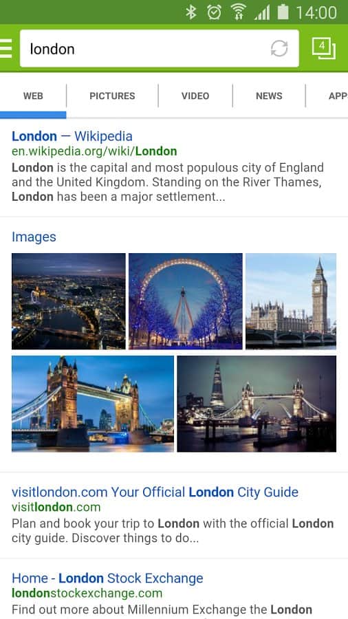 Встроенная в приложение поисковая система Mail.Ru
