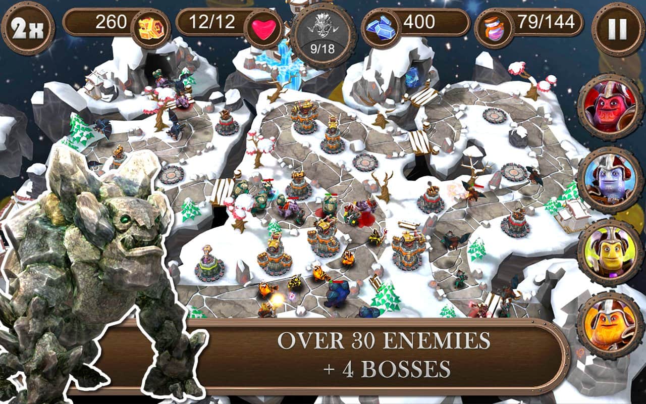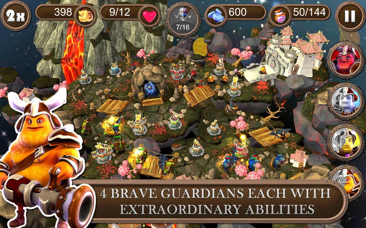 Brave Guardians - фэнтези стратегия для андроид. Выбирайте одного из четырех персонажей, далее - режим игры и начинайте эпохальные события под вашим чутким руководством. Вас ждут 4 мира - Лес, Лава, Зима и Пустыня на протяжении 22 уровней с 3D графикой. Башни, модернизация, разные свойства разных героев, кампания и защита, 3 магических врага и 4 босса - в каждом мире свой! А также масштабность и зрелищность происходящего!