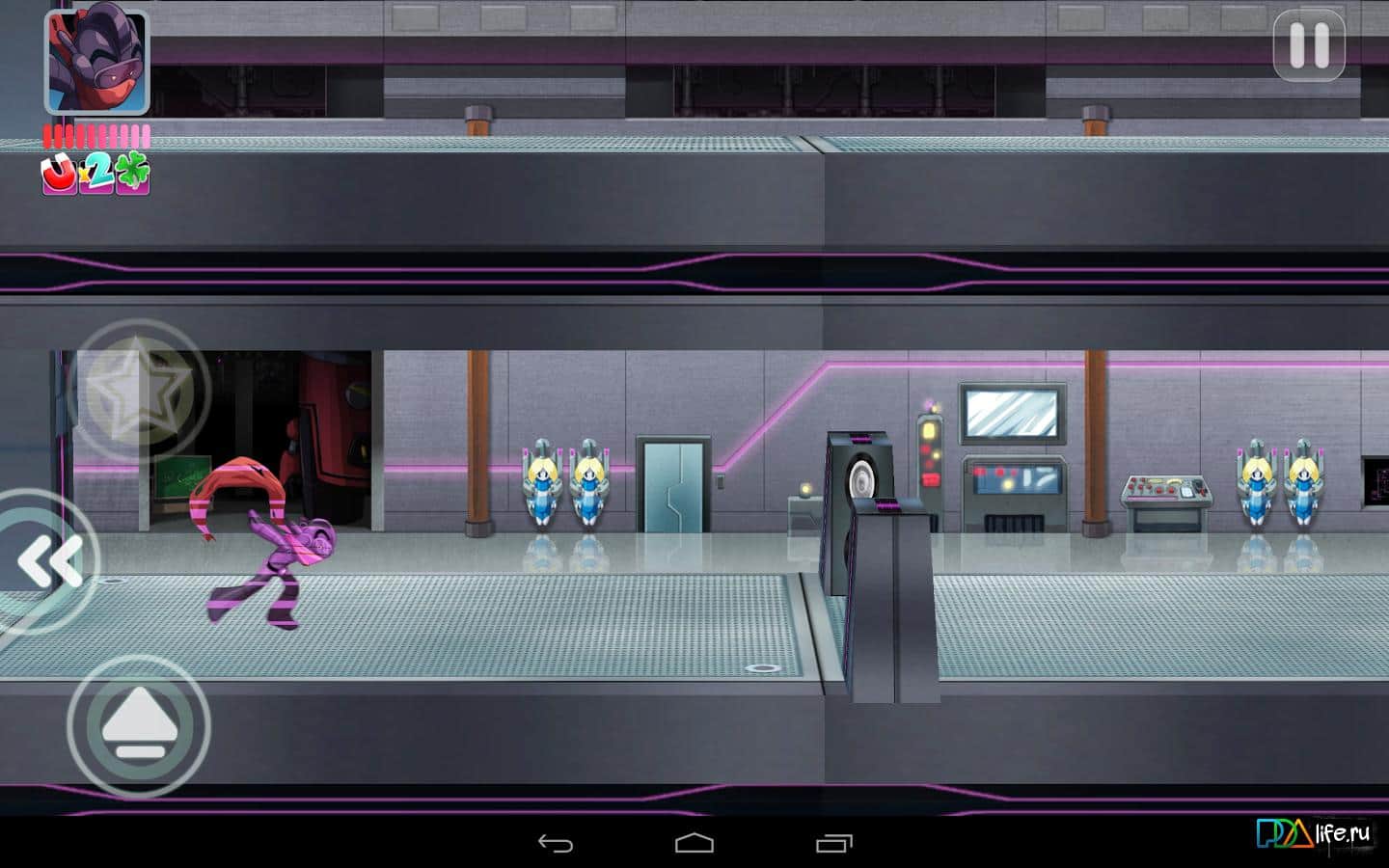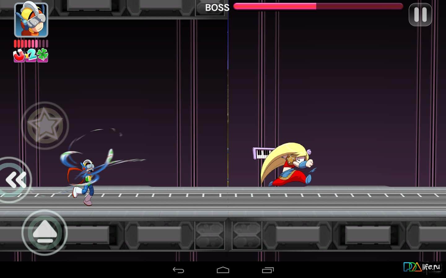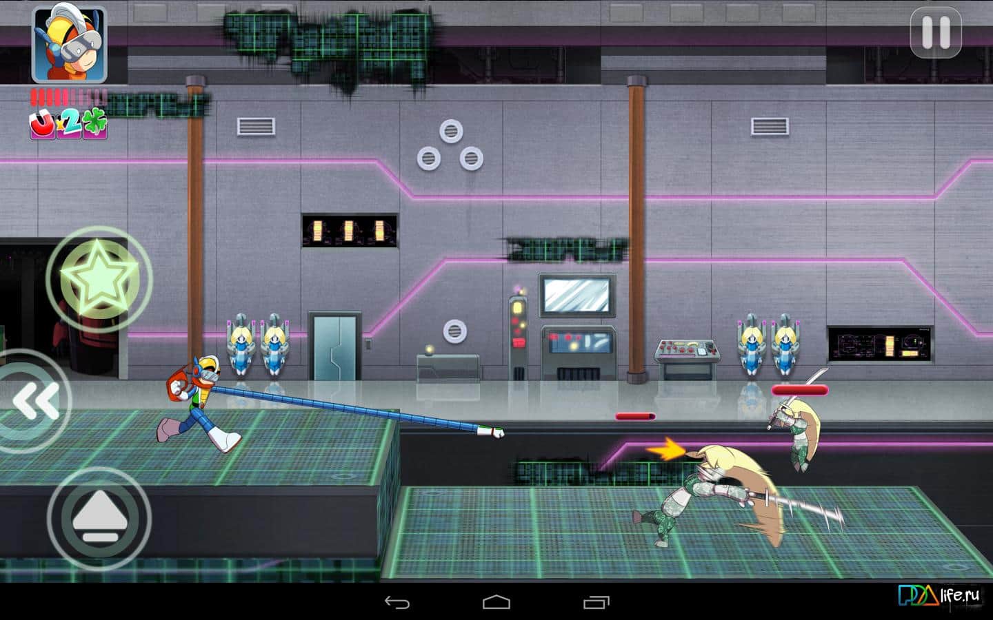 BRAVOMAN: Binja Bash - игра на аndroid, в которой вам предстоит управлять супер героем который пытается спасти мир от злобного Доктора. Боритесь с его армией роботов-ниндзя а также собирайте их части с помощью которых вы сможете освободить друзей и разблокировать новые уровни. Также у вас будет множество других функций, помимо основных прыжков и атак.