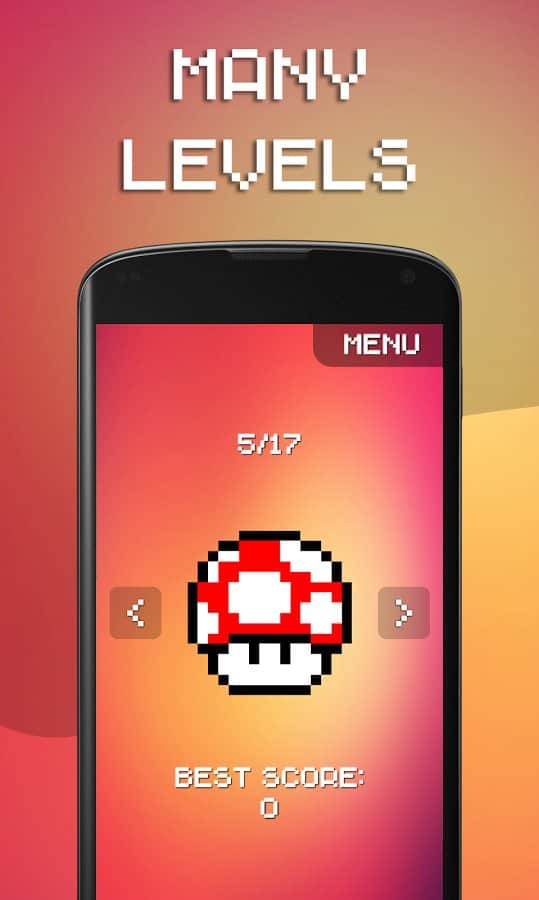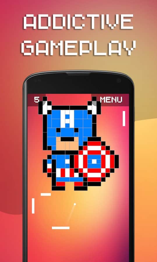 Break Blocks [Pixel Art] – классический арканоид на андроид, выполненный в пиксельном стиле. В этой игре вы будете управлять шариком, который ударяется о движущуюся платформу и разбивает различные детали. Эта игра порадует вас веселыми уровнями, где вы будете разбивать забавные мордочки, состоящие из деталей. Каждая мордочка в этой игре уникальна и состоит из многочисленных деталей, которые имеют разный размер и форму. Запускайте свой шарик в полет и уничтожайте как можно больше деталей одним ударом. Набирайте очки и соревнуйтесь с друзьями за лучшие результаты.