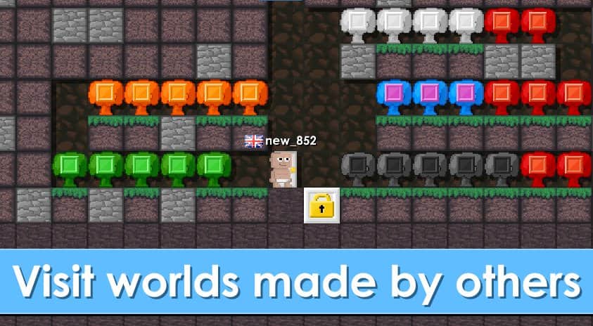 Breaworlds – многопользовательская песочница на ан андроид, где вы будете исследовать и создавать свой удивительный мир. Положитесь на свою сообразительность и творческие навыки и создайте свой неповторимый мир. Посещайте миры своих друзей и вместе весело проводите свое свободное время получая за это бонусы и усиления. Улучшайте и прокачивайте своего героя по ходу игры и меняйте его внешний вид. Собирайте нужные вам ресурсы и элементы и создавайте новые предметы, которыми наполните свой мир. Игра выполнена в пиксельной графике в стиле ретро и порадует вас оригинальным игровым процессом и возможностью играть с друзьями.