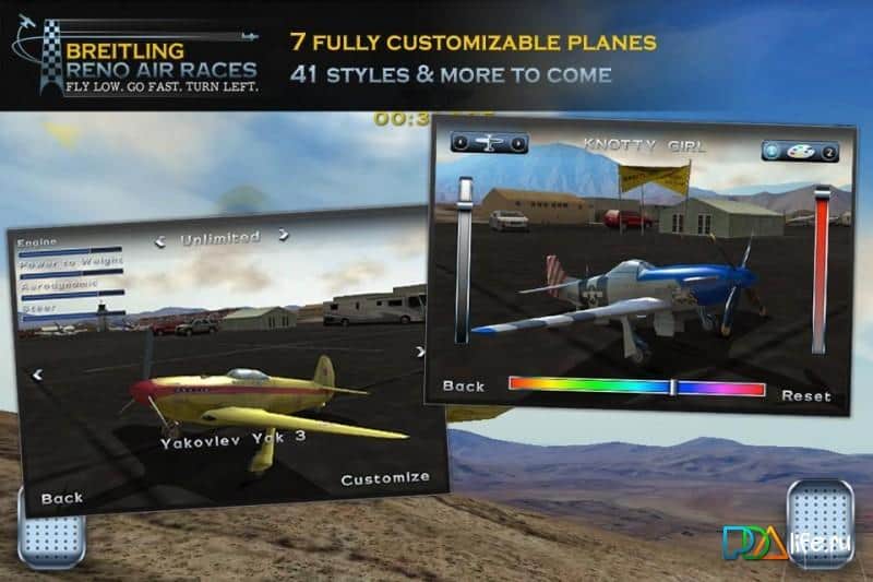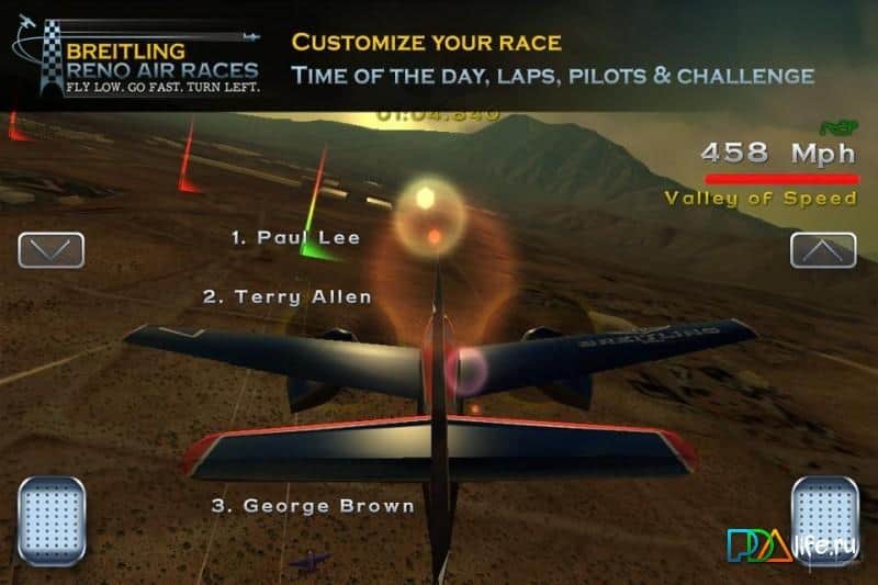 Breitling: Reno Air Races - гонки на спортивных самолётах, что может быть захватывающей? Участвуйте в чемпионате, который проходит в аэропорте в нескольких милях от Рино в штате Невада. На протяжении 5 дней пилоты в нескольких категориях соревнуются в небе. Гоночный самолёт может достигать скорости в 500 миль/час. В игре присутствует интересный многопользовательский режим, в котором вы можете сами настроить свои самолёты перед вылетом.